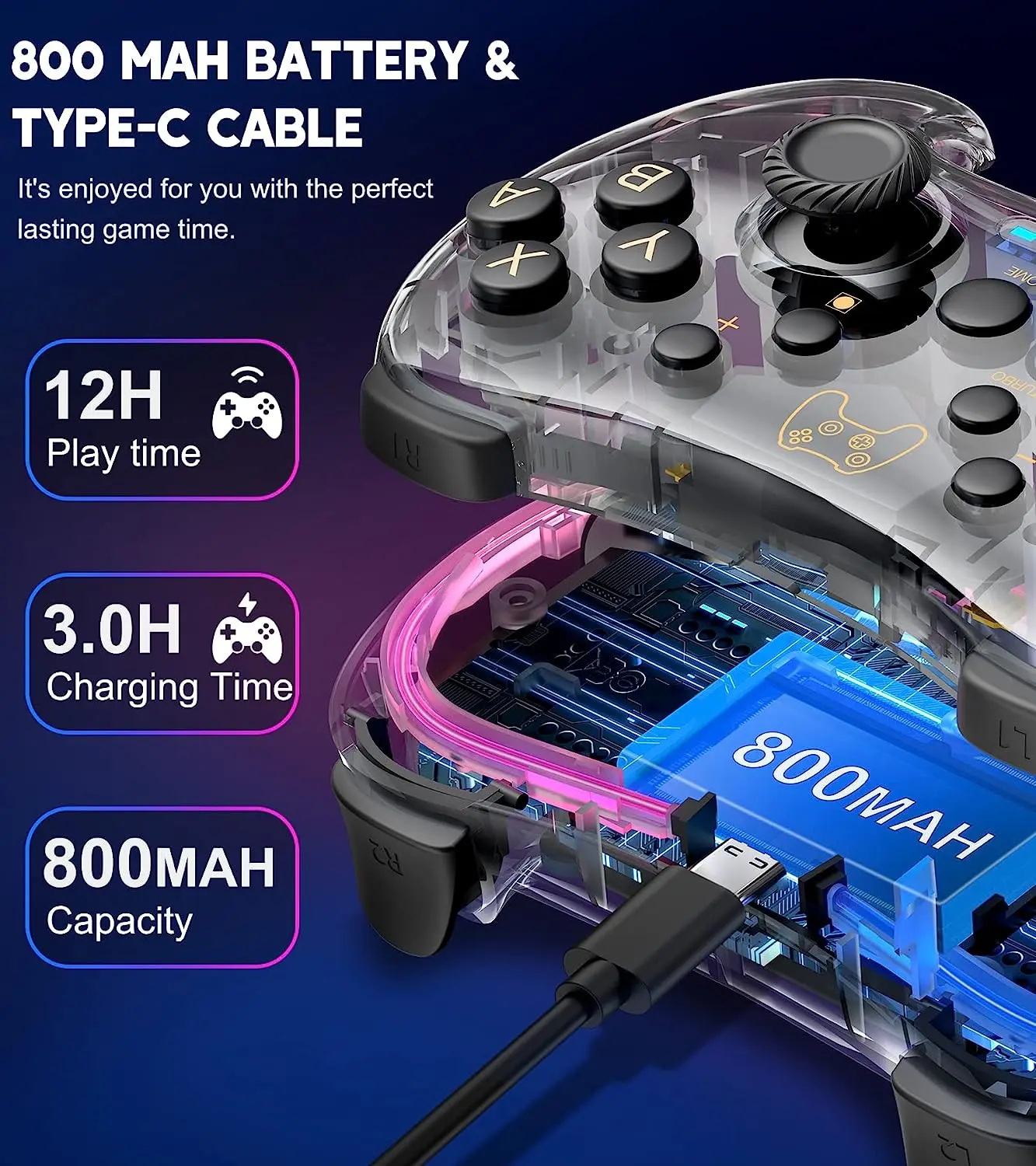 【LUZ LED DE 10 COLORES Y 3 MODOS】 Los controladores Switch están hechos de un resistente material transparente de PC, con una tira RGB integrada que combina 10 colores para crear una atmósfera de iluminación de juego cautivadora.Ofrece 3 modos de luz diferentes, que se pueden controlar fácilmente mediante un botón adicional.Personaliza los efectos de iluminación según los diferentes juegos y sumérgete profundamente en el mundo del juego.
