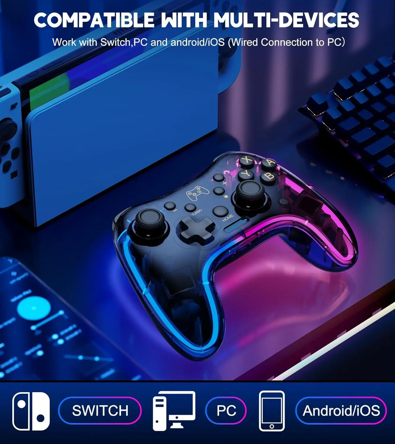 Comprar Controlador con LED de respiración RGB, controladores de interruptor, controladores remotos, compatible con multiplataforma y aplicación con Turbo, función de despertador