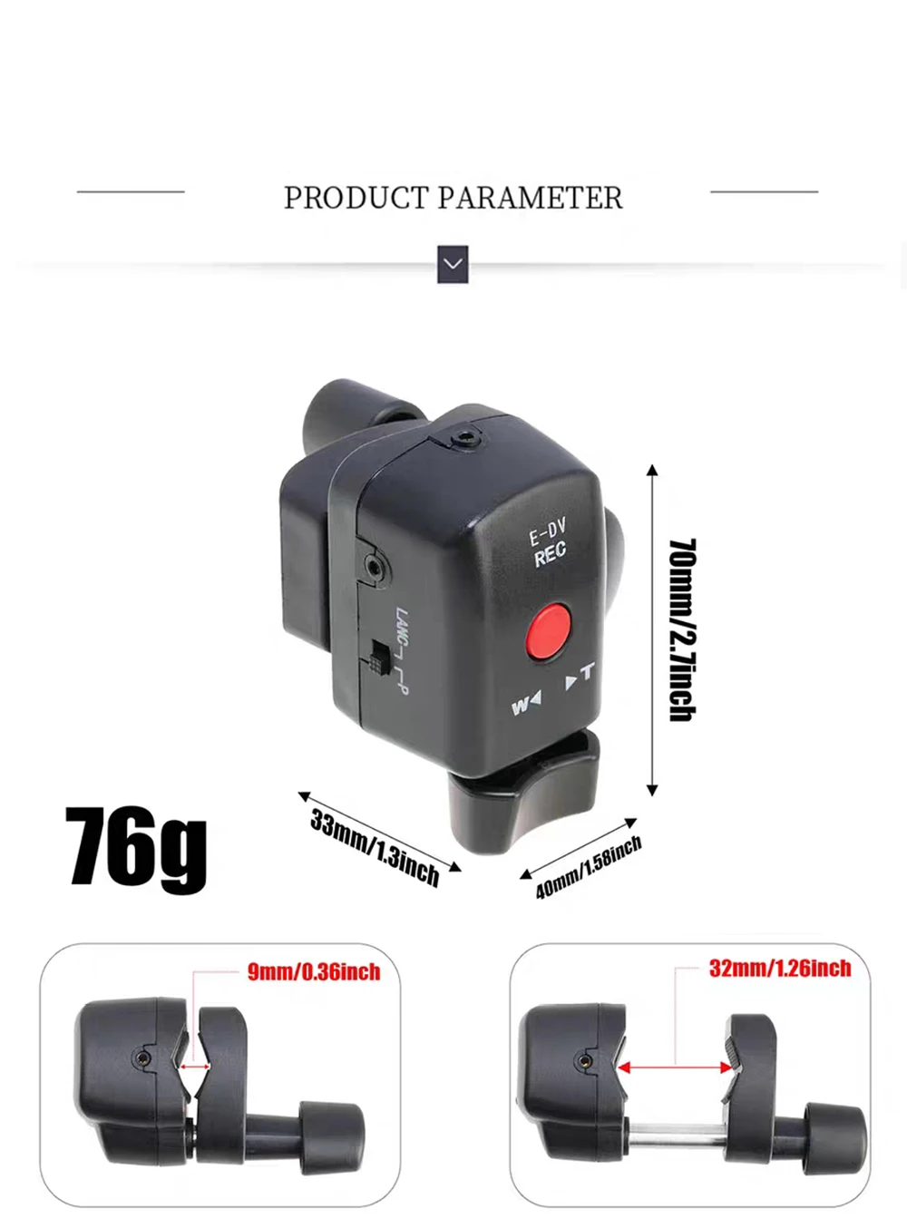 De tamaño pequeño y fácil de transportar, con control sensible.La perilla de zoom se puede presionar con un pulgar para proporcionar una sensación táctil aguda, lo que permite que la velocidad de pulsación cambie de lenta a rápida.El enfoque de apertura se puede cambiar manual y automáticamente a voluntad.Adecuado para cámaras con interfaz LANC ACC REMOTE de 2,5 mm como Sony, Canon, Panasonic, etc.Este mando a distancia con cable de 100 cm es un mando a distancia con cable para videocámaras Panasonic con conector LANC.El control remoto controla diversas operaciones para realizar sin manipular la cámara, eliminando así las sacudidas de la cámara y mejorando los resultados y la comodidad de la calidad de la imagen.Además de activar el obturador a distancia, puedes controlar el zoom y grabar vídeo.Compatibilidad:Paquete incluido:
