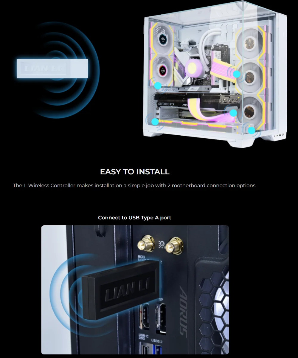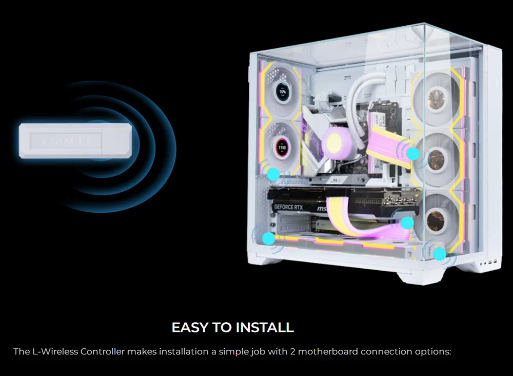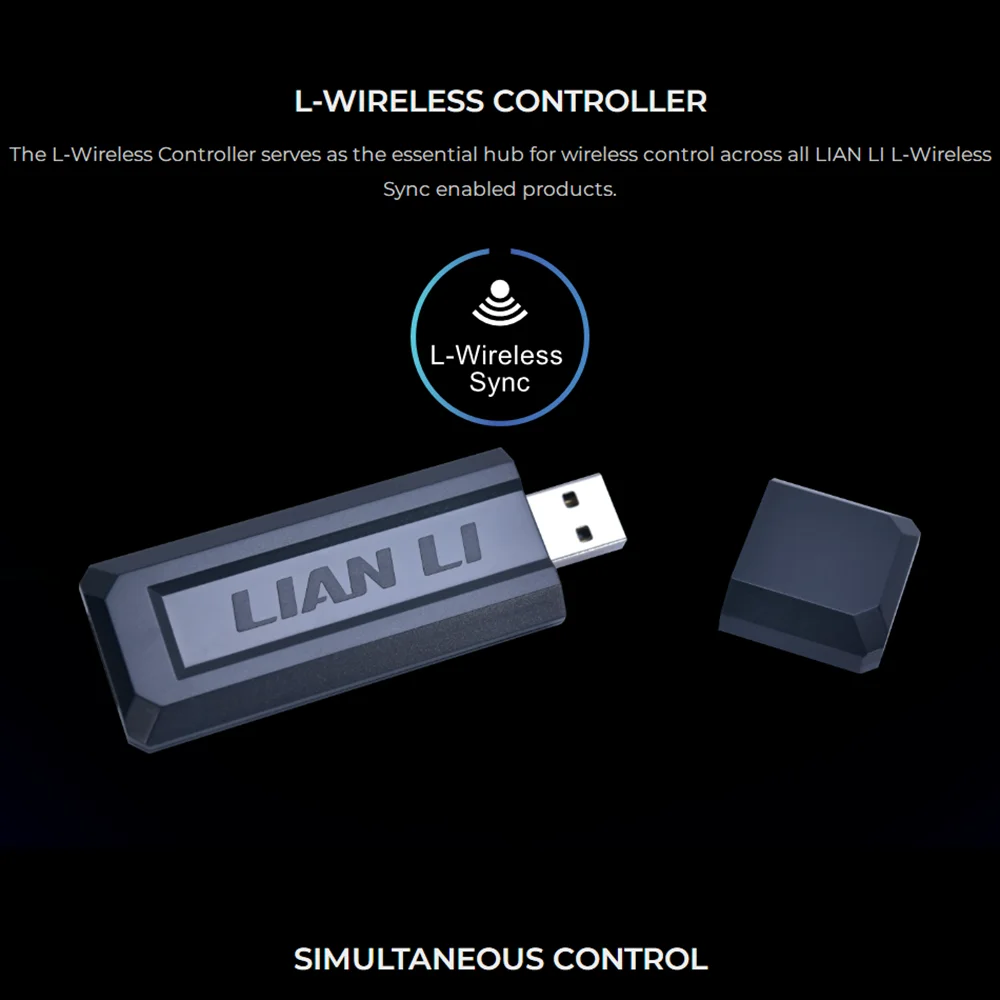 Controlador LIANLI L-Wireless, transmisor inalámbrico USB, cable emisor de luz inalámbrico y ventilador inalámbrico dedicado.