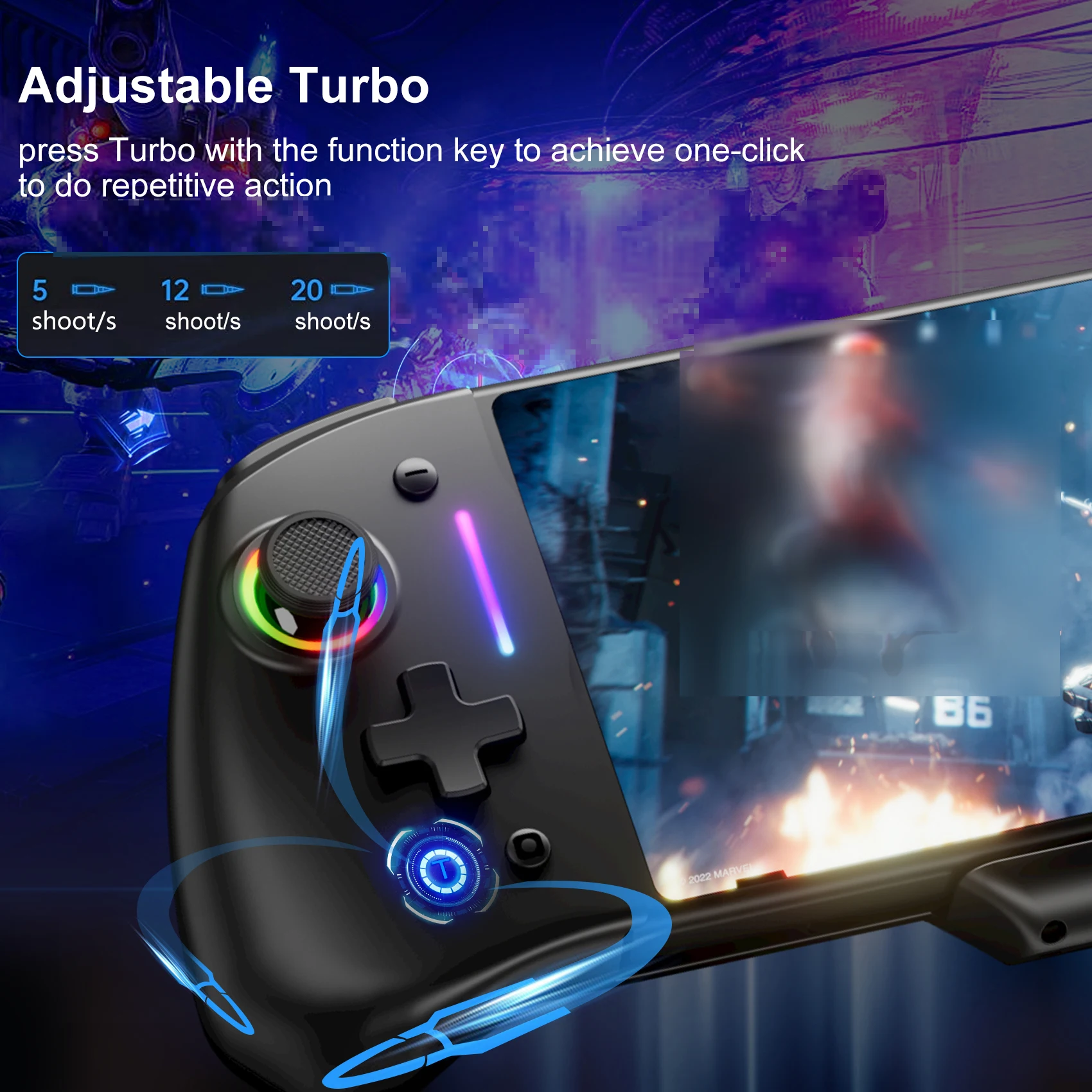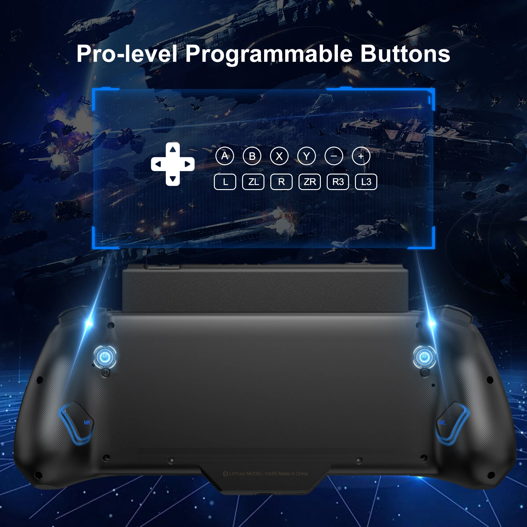🎮【3 velocidades turbo y botón Atrás】El controlador de reemplazo del interruptor admite la función turbo automática/manual.Presione la tecla cruzada A/B/X/Y/L1/L2/R1/R2 y la tecla turbo para configurar el TURBO.Para juegos de disparos según sus necesidades, simplemente puede configurarlo en 5/12/20 disparos por segundo, aumentando efectivamente la vida útil de los botones de uso común.Para un funcionamiento detallado, consulte el manual del usuario o contáctenos.El controlador de interruptor de una pieza funciona bien con Zelda: Lágrimas del Reino, Pokémon, Splatoon 3, Mario, etc.