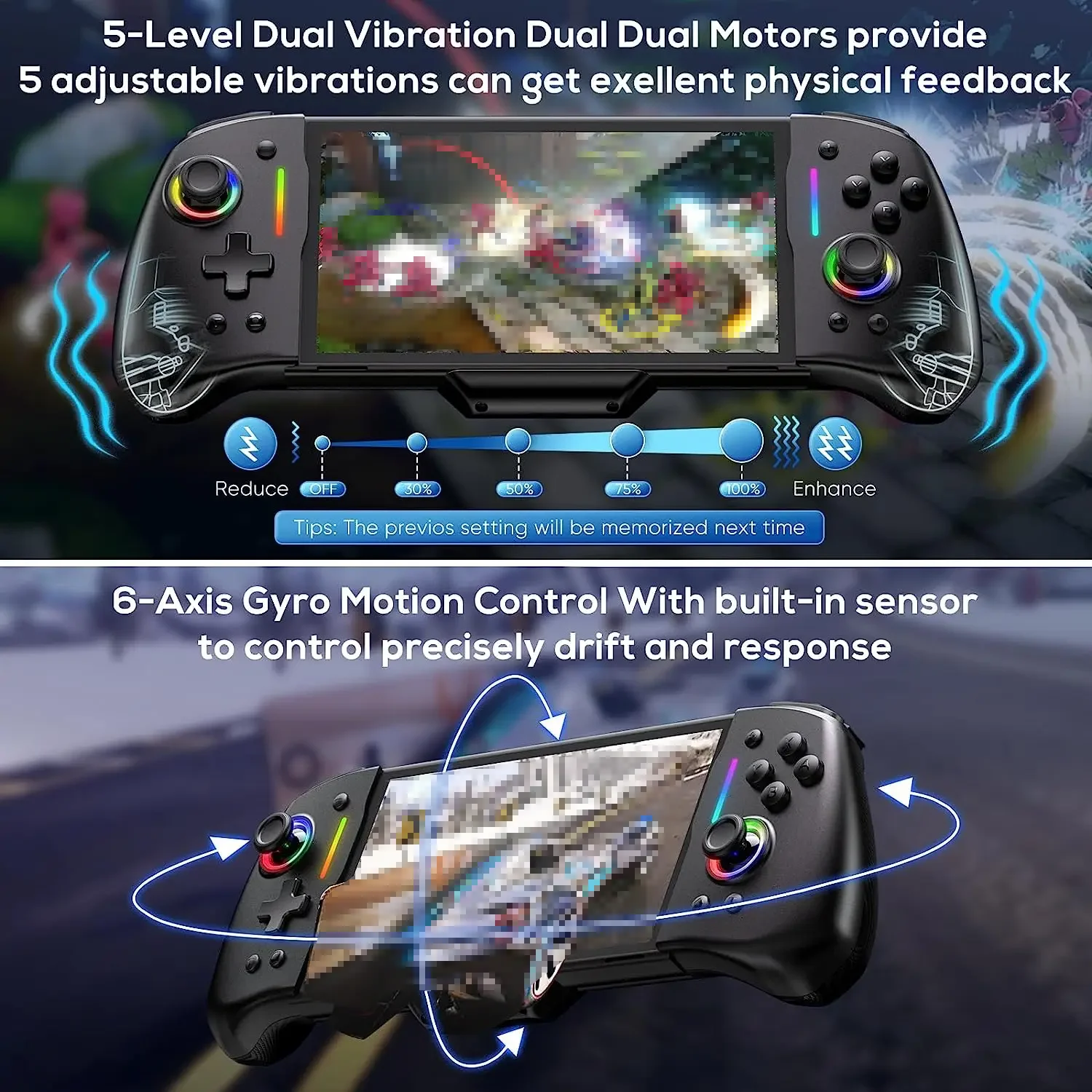 Comprar Controlador mejorado sin zona muerta para interruptor/interruptor OLED modo portátil, luz LED ajustable, diseño ergonómico, giroscopio de 6 ejes, Turb0