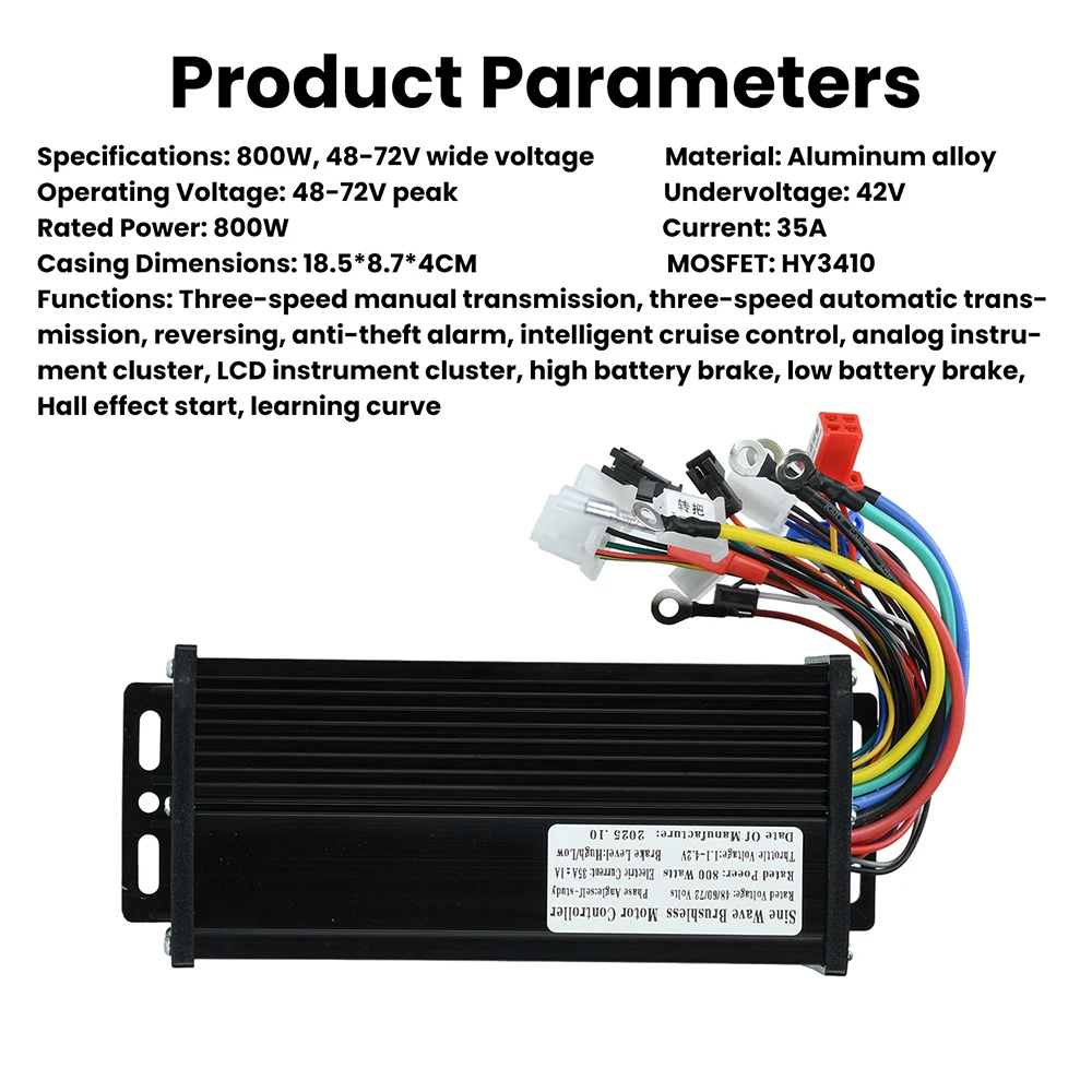 Features: 3-speed gear shifting, 3-speed jog mode, reverse gear, anti-theft alarm, intelligent cruise control, analog gauge, LCD display, high-voltage battery brake, low-voltage battery brake, Hall-less start, learning wire