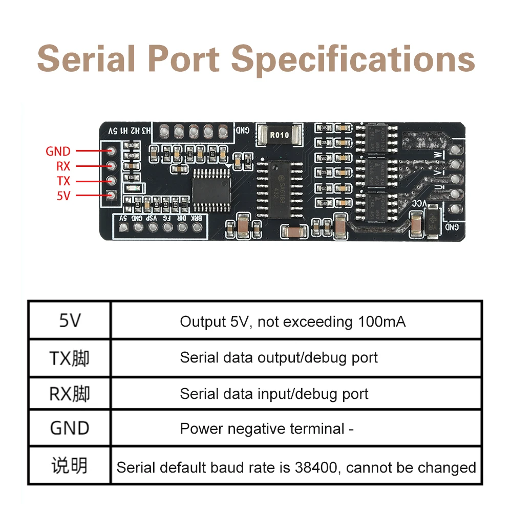 2.El módulo carece de protección contra polaridad inversa; Una conexión de alimentación incorrecta causará daños permanentes.