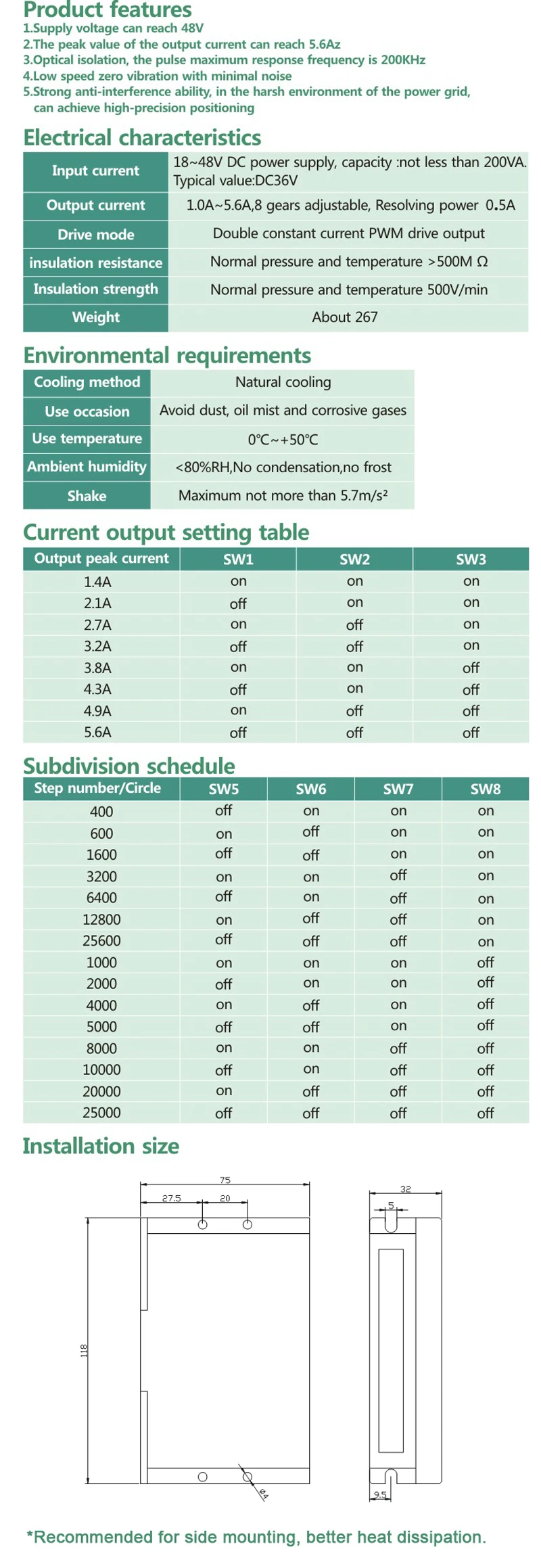 Controlador de motor paso a paso digital DM556, controlador de motor paso a paso de 2 fases 5.6A para 57 86, NEMA23 NEMA34