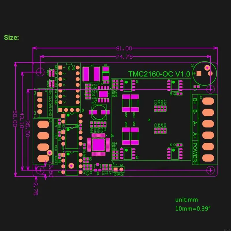 TMC2160-OC tiene dos modos de trabajo, el modo SpreadCycle (sin función de silencio) y StealthCHop (con función de silencio).Se puede cambiar mediante un interruptor DIP