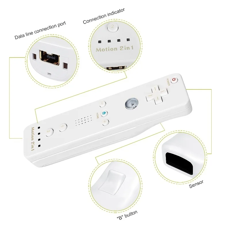 Sensor de movimiento:Con la función de detección de energía cinética, puede detectar el cambio de inclinación estéreo del controlador.El acelerómetro G-Sensor detecta el movimiento del mango para detectar la fuerza de oscilación, la dirección y el ángulo de inclinación (aceleración de gravedad lineal y centro de gravedad) del Wiimote cuando el jugador controla el Wiimote.MotionPlus incorporado detecta la dirección y fuerza de rotación en tiempo real (como el vector de rotación y la velocidad angular) cuando el jugador controla Wiimote.
