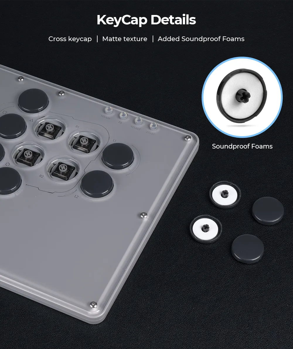 Este es un controlador sin palanca hecho de interruptores de cristal, que es completamente blanco e impecable, lo que lo hace irresistible.El efecto de iluminación RGB tiene una mejor transparencia, lo que te permite sumergirte en el juego.