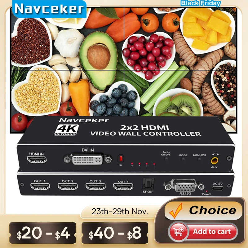 Comprar Controlador de pared de vídeo, 2x2, 1x2, 1x3, 1x4, 2x1, 3x1, 4x1, 4K, DVI, HDMI