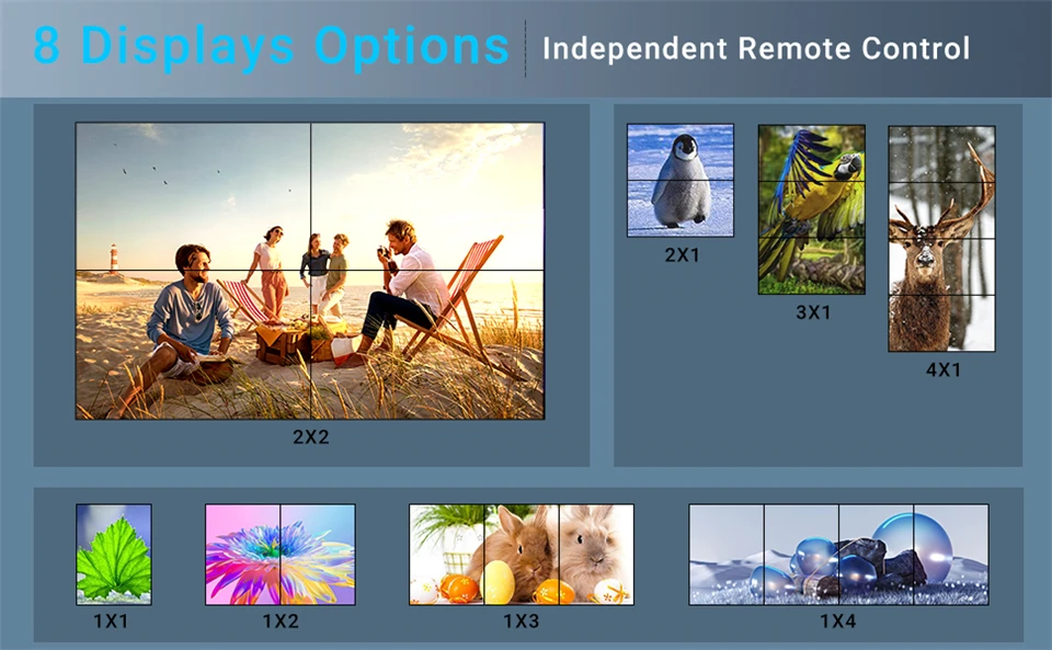 Controlador de pared de video 2x2 Procesador 1x2 1x3 1x4 2x1 3x1 4x1 4K Controlador de pared de video HDMI Procesador de pared de costura de video TV