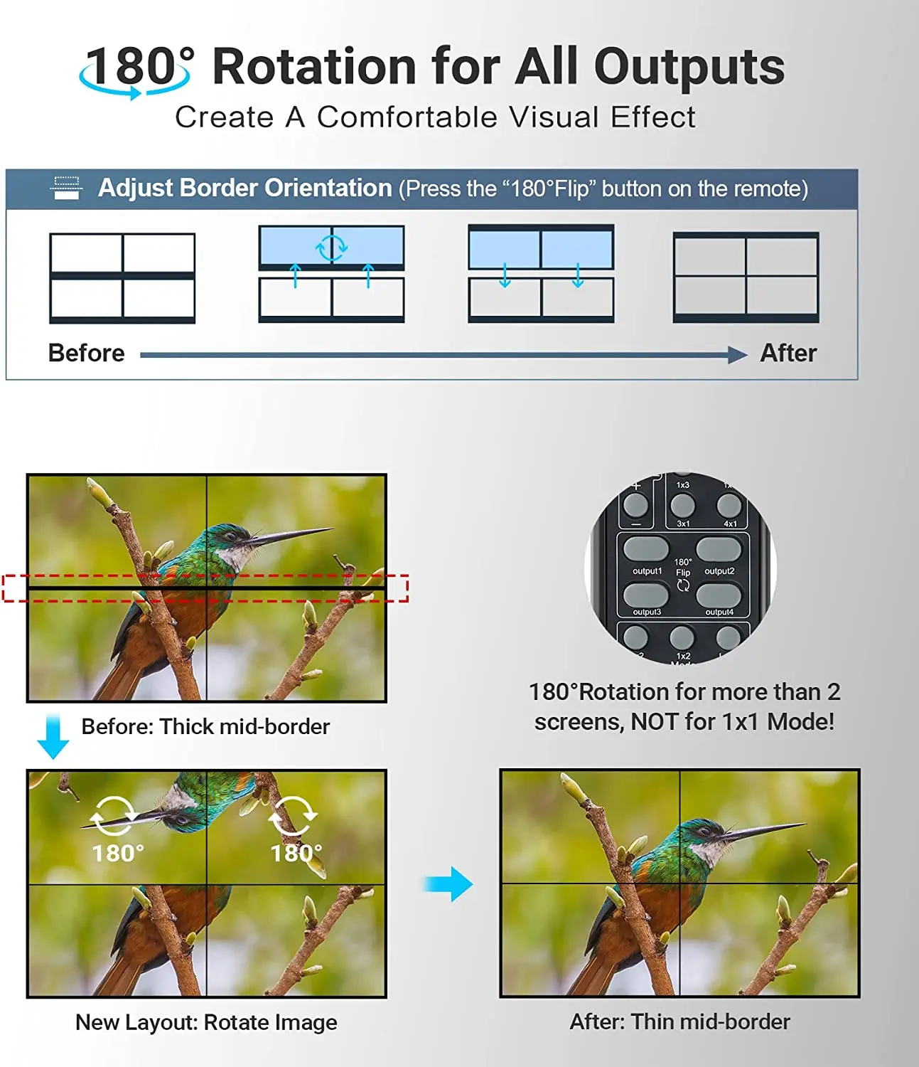 Compatible con modo 2x2, la primera fila de dos unidades de visualización gira 180 °