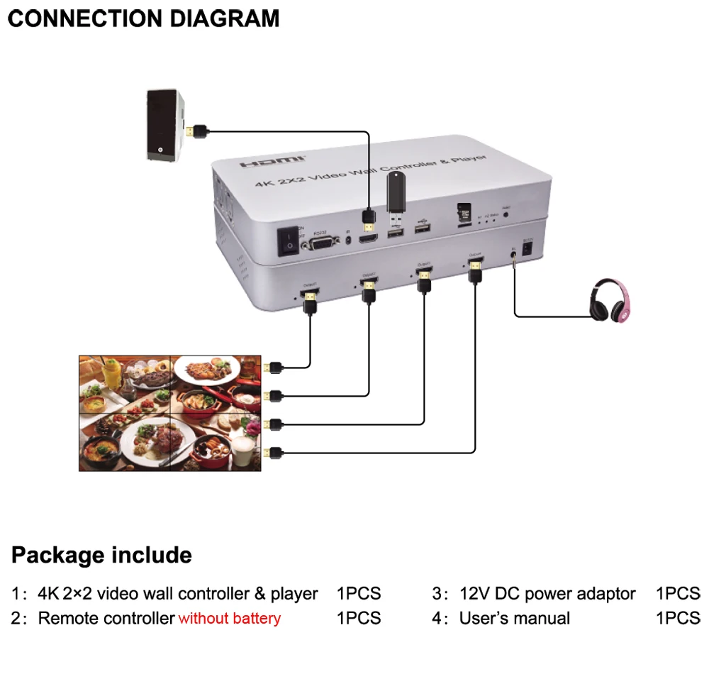 Comprar Controlador de pared de Video 4K 2x2, reproductor de disco Flash U, procesador de pared de TV, empalmador de Video HDMI, empalme de pantalla múltiple, teclado de lata, ratón