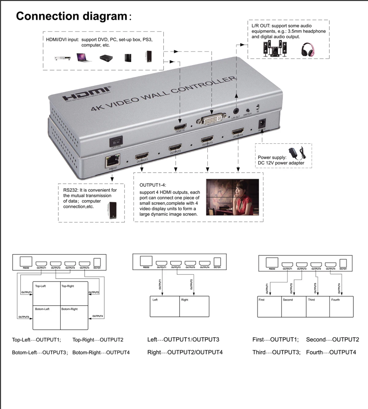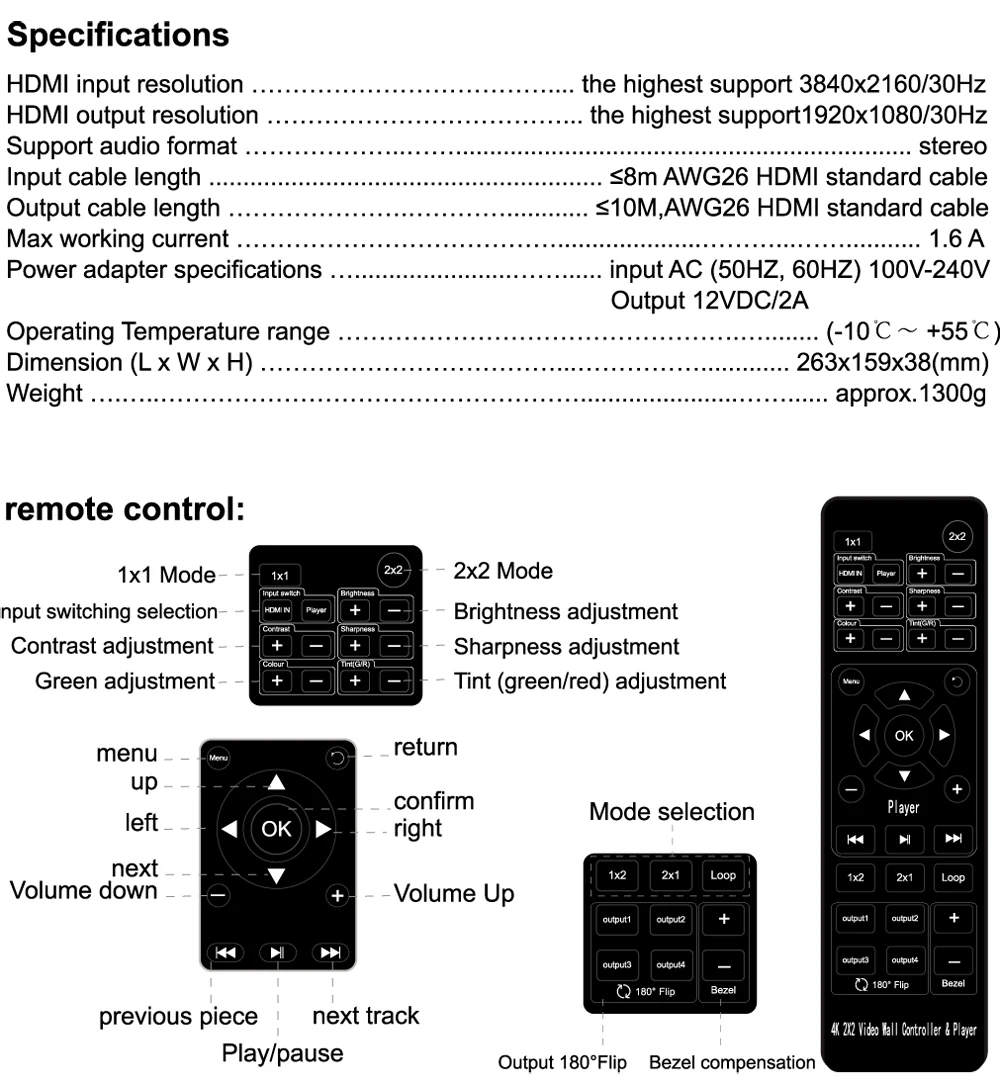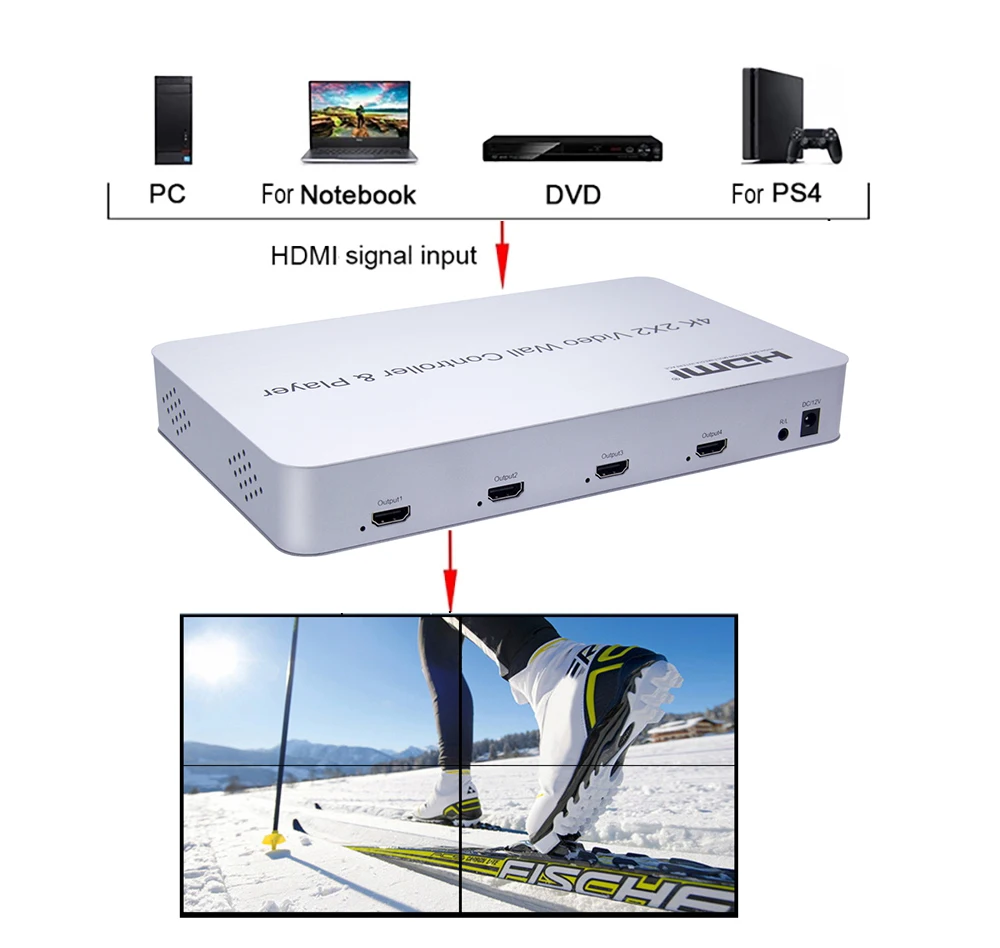 Controlador de pared de vídeo 4K 2x2, reproductor de disco flash U, procesador de empalme multipantalla HDMI 1x2 1x3 1x4 4x1, empalmador de TV Plug and Play