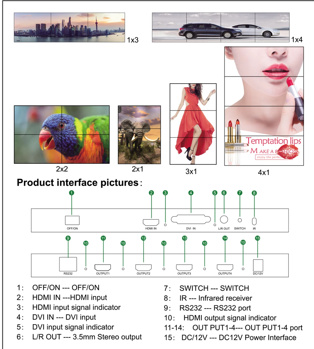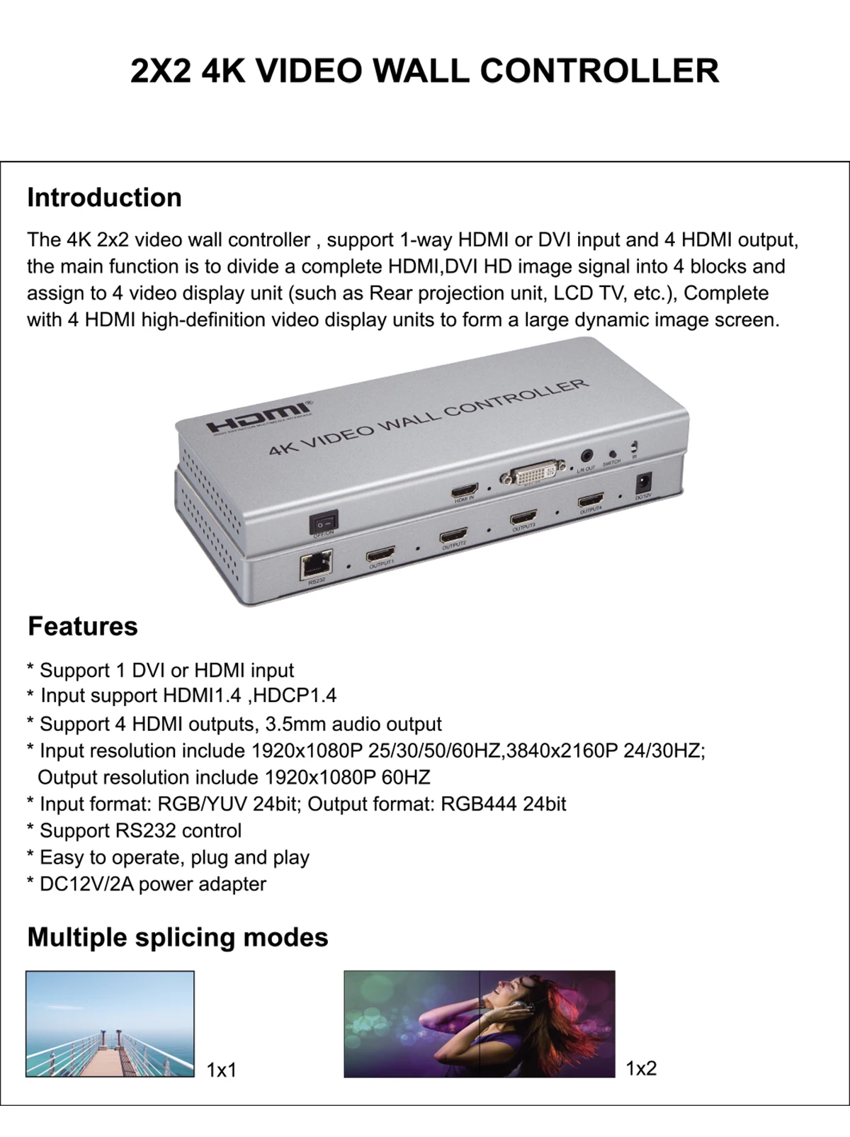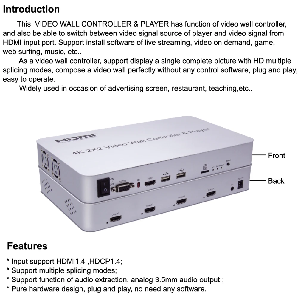 Comprar Controlador de pared de vídeo 4K 2x2, reproductor de disco flash U, procesador de empalme multipantalla HDMI 1x2 1x3 1x4 4x1, empalmador de TV Plug and Play