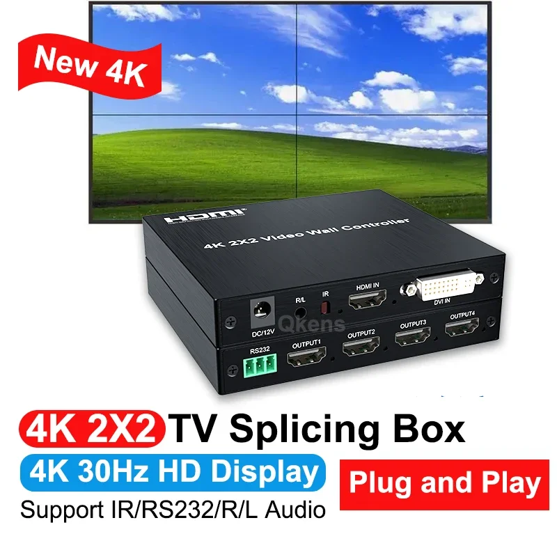 Comprar Controlador de pared de vídeo 4K @ 30hz 2x2 DVI HDMI, caja de empalme de pantalla múltiple, 1080P @ 60hz, 1x2, 1x3, 1x4, 4x1, 1 en 4, empalmador de TV procesador