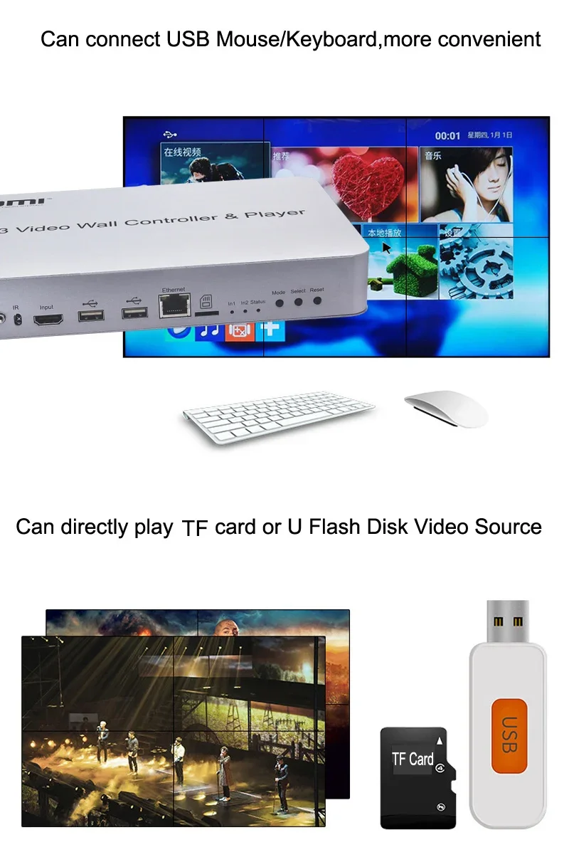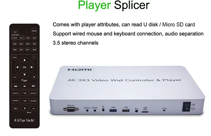 Comprar Controlador de pared de vídeo 4K 3x3, reproductor de disco U, procesador de empalme de pantalla múltiple 4k 2x2 2x3 2x4 1x3 1x4, empalmador de pared de TV, empalmador de vídeo