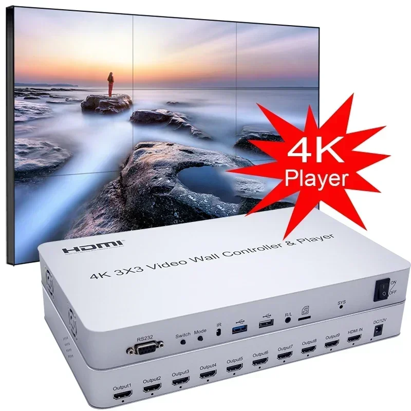 Comprar Controlador de pared de vídeo 4K 3x3, reproductor de disco U, procesador de empalme de pantalla múltiple 4k 2x2 2x3 2x4 1x3 1x4, empalmador de pared de TV, empalmador de vídeo