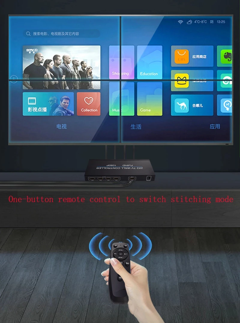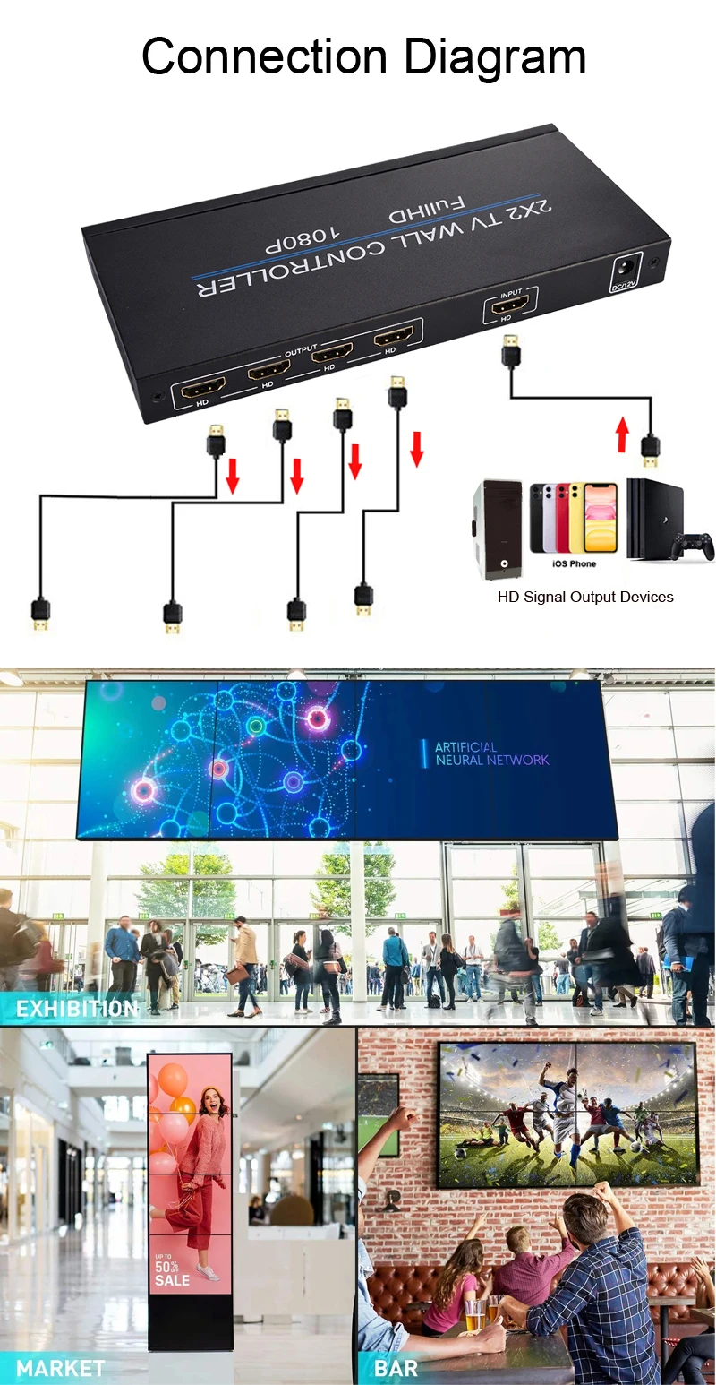 Este controlador de pared de video Full HD 1080P 2x2 admite 1 entrada compatible con HDMI y 4 salidas compatibles con HDMI,