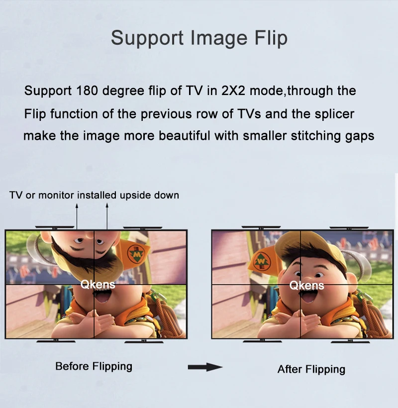2. La función Flip de 180 grados solo funciona en el modo 2x2 de la primera fila de pantallas.