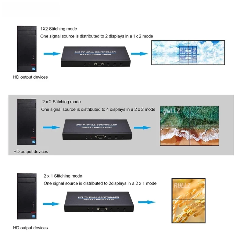 Comprar Controlador de pared de Video 4K 60Hz 2x2 4 vías, procesador de costura de pantalla múltiple 1x3 1x2 1x4, empalmador de TV para Monitor de conferencia de oficina y centro comercial