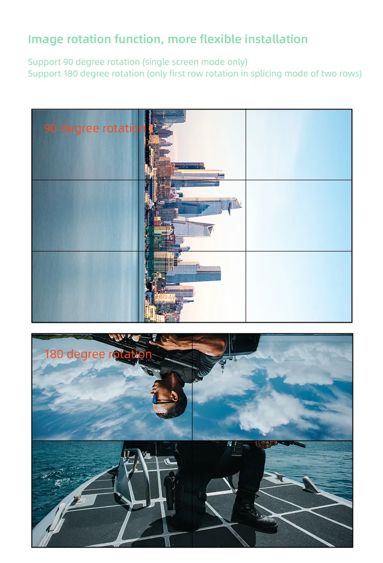 * La entrada admite Pantalla CompletaRotación de 90 °(Solo para modo de pantalla única), la salida