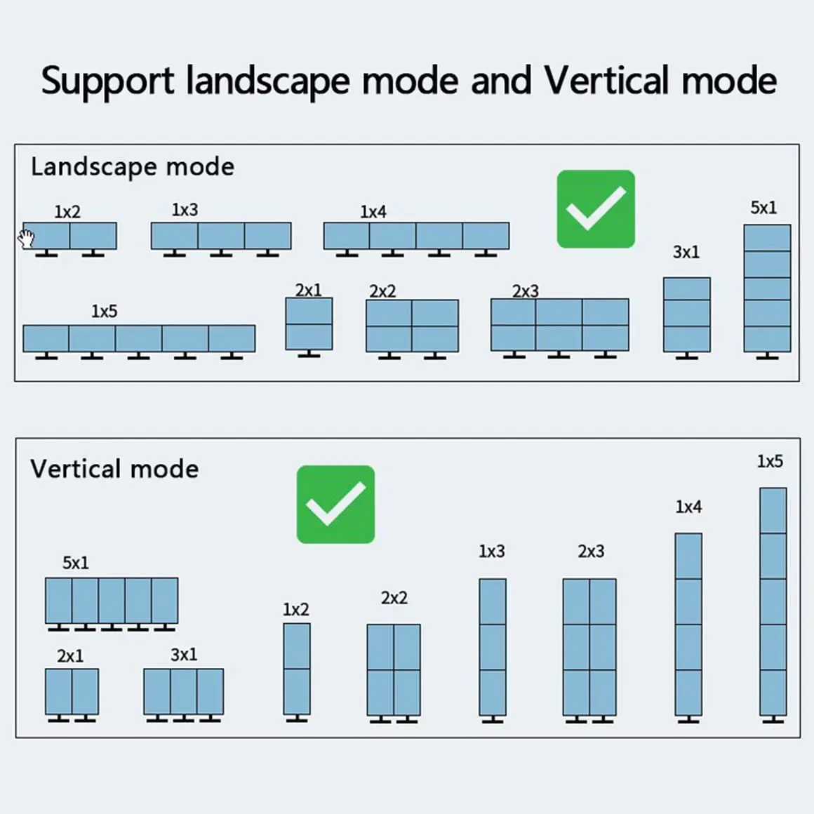* Dispositivo único, 5 entradas y 9 salidas (compatible con 1x1 ~ 4x4), varios modos de empalme: horizontal/