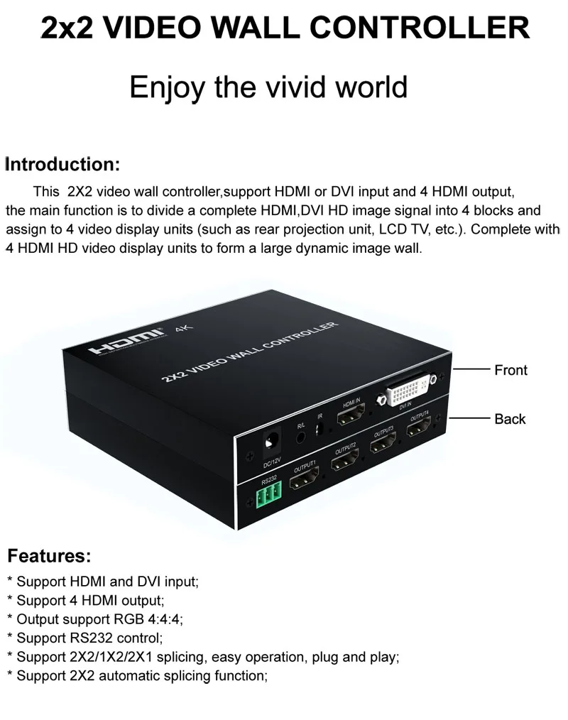 Comprar Controlador de pared de vídeo 4K, caja de empalme de TV de 1080p, 1x2, 1x3, 1x4, 2x1, 3x1, 4x1, interruptor HDMI DVI, procesador de pared de vídeo empalmador de pantalla