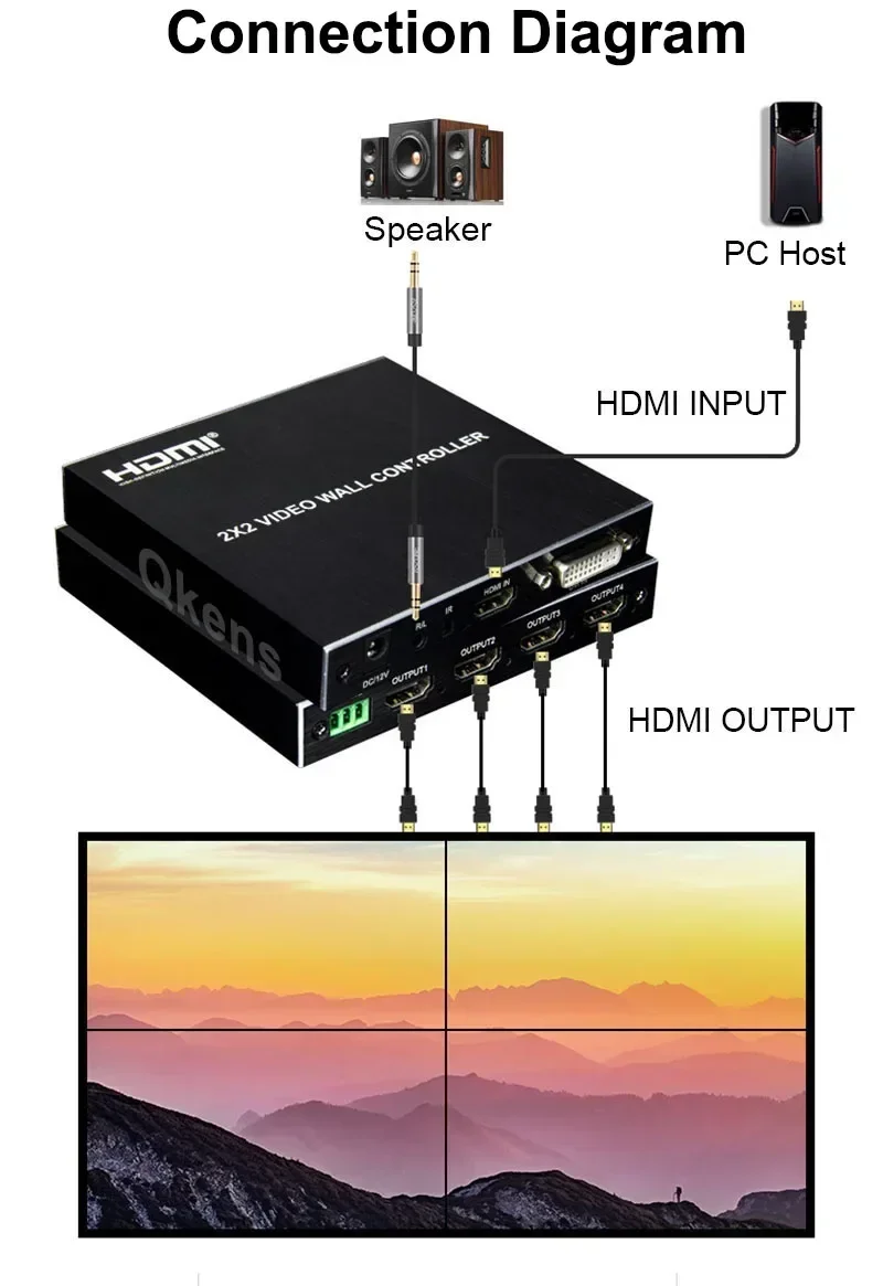 Comprar Controlador de pared de vídeo 4K, caja de empalme de TV de 1080p, 1x2, 1x3, 1x4, 2x1, 3x1, 4x1, interruptor HDMI DVI, procesador de pared de vídeo empalmador de pantalla