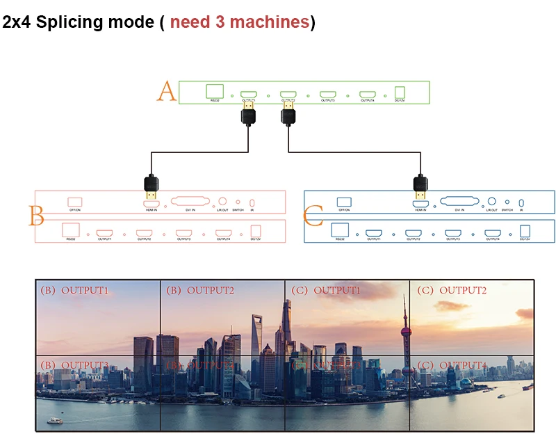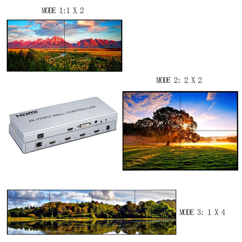 Comprar Controlador de pared de vídeo 4K HDMI, 1080P, 60Hz, HDMI, DVI, TV, procesador de pared, 1x2, 1x3, 1x4, 2x1, 3x1, 4x1, costura de vídeo de TV, rotación de 180 grados