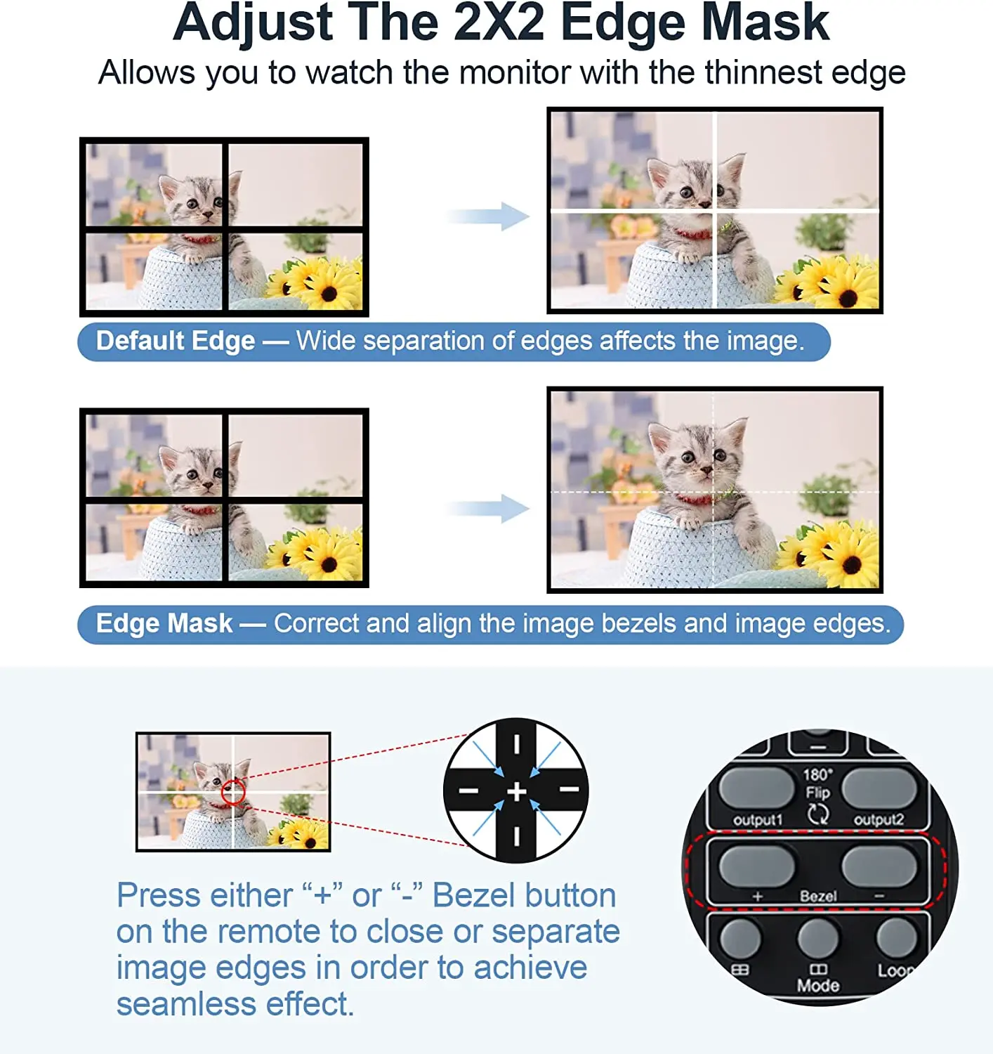 (5) Admite la función de rotación de 180 °, solo se ajusta al modo 2x2, la primera fila de 2 unidades de visualización puede girar 180 grados.