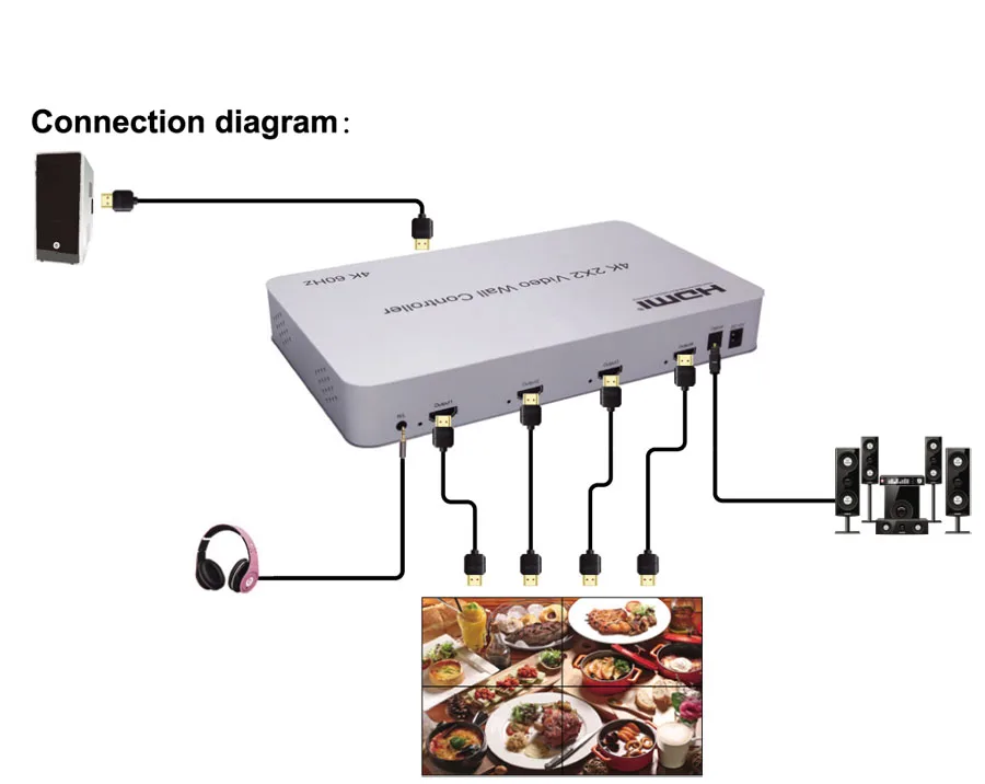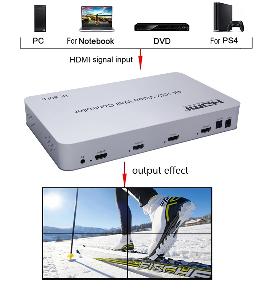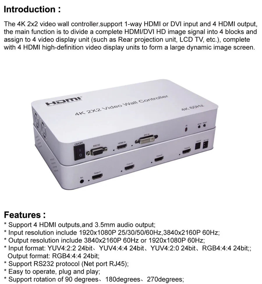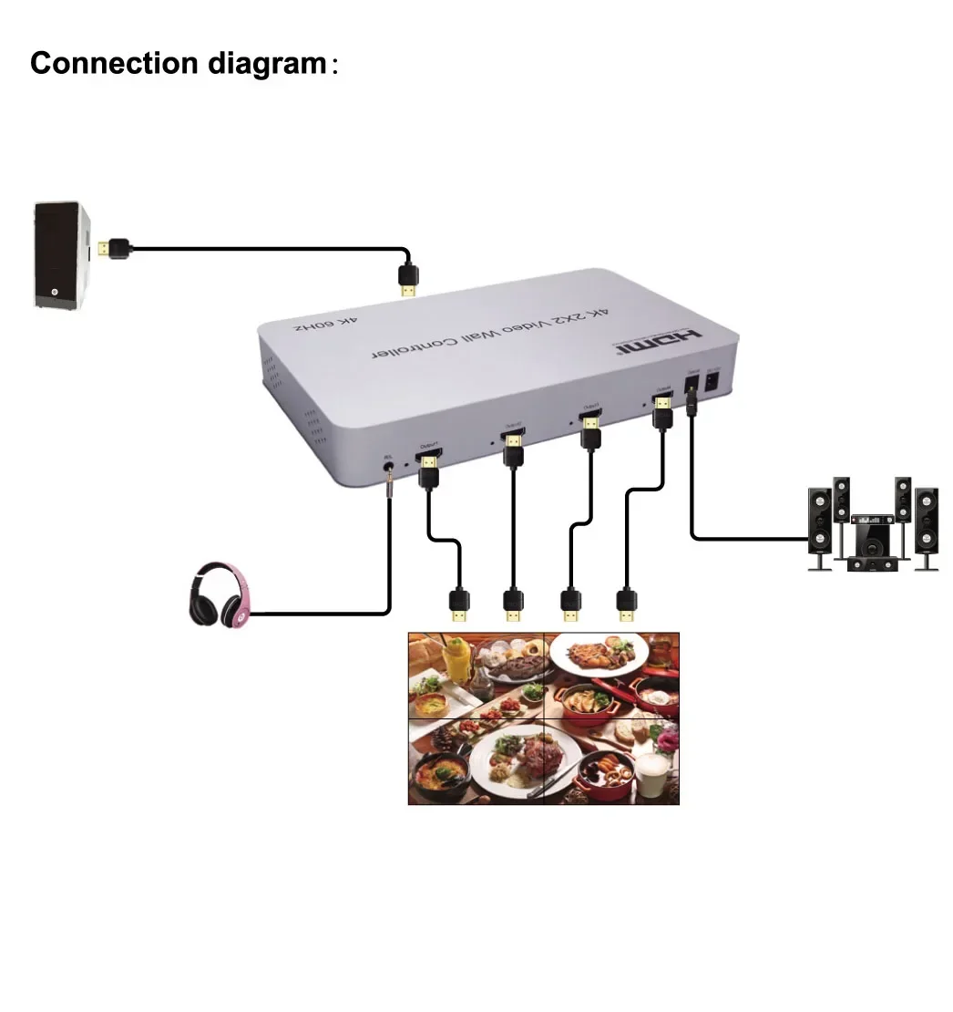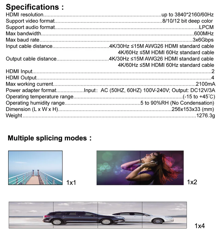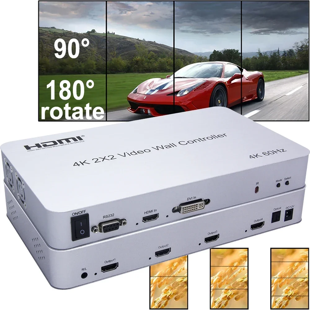 Comprar Controlador de pared de vídeo DVI HDMI 4 unidad empalmador de TV 1x2 1x3 1x4 2X2 procesador de pared de vídeo pantalla Vertical Horizontal 4K @ 60Hz