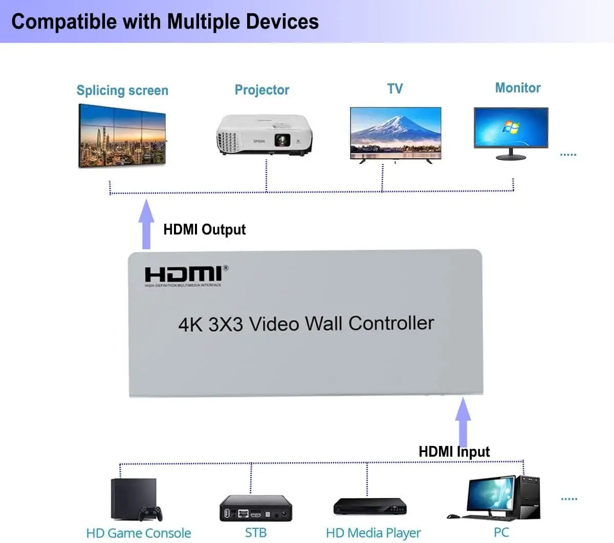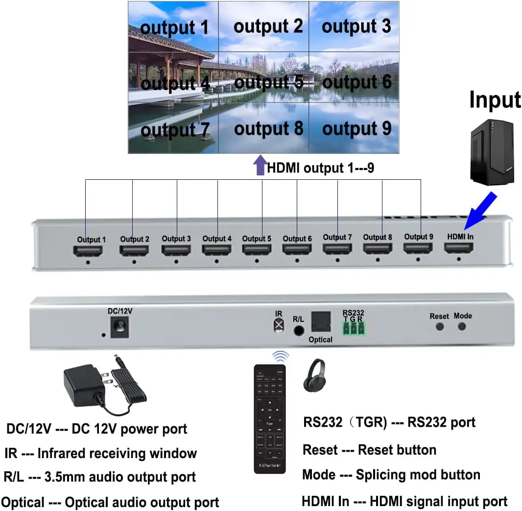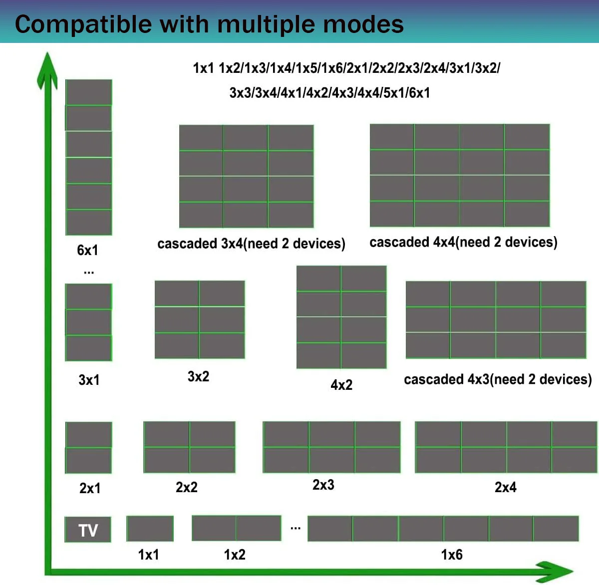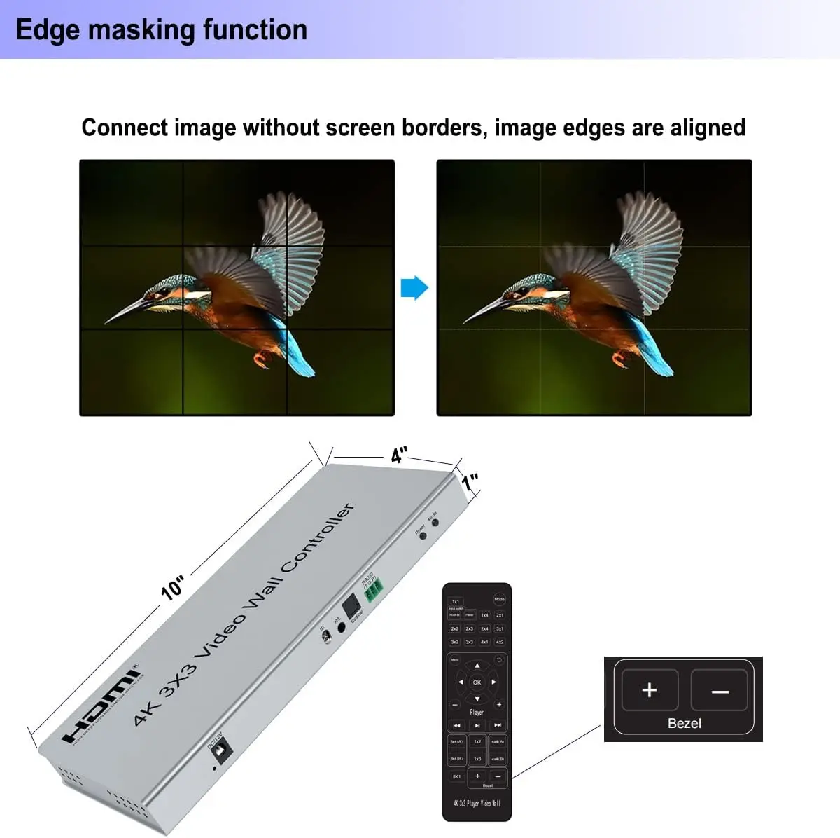 Comprar Controlador de pared de vídeo con Extractor de Audio, 3x3, 4K, 9 canales, HDMI, 1 en 9, empalme de TV, 1x6, 2x1, 2x2, 2x4