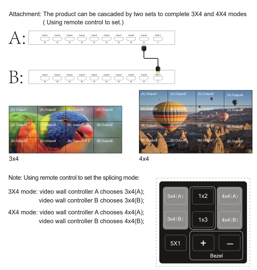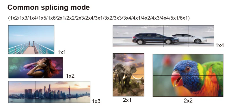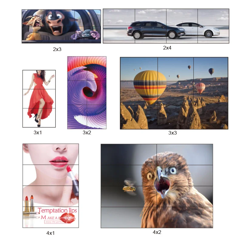 Señal de imagen HD en 9 bloques y asignar a 9 unidades de visualización de vídeo (como unidad de proyección trasera, TV LCD, etc.),