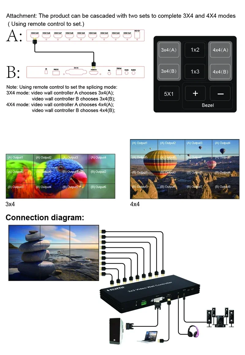 Nota:Este producto no admite el empalme de pantallas verticales. Si tiene alguna demanda,