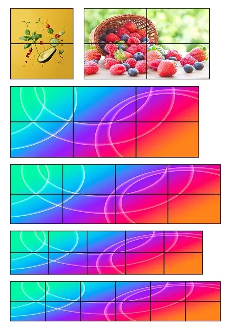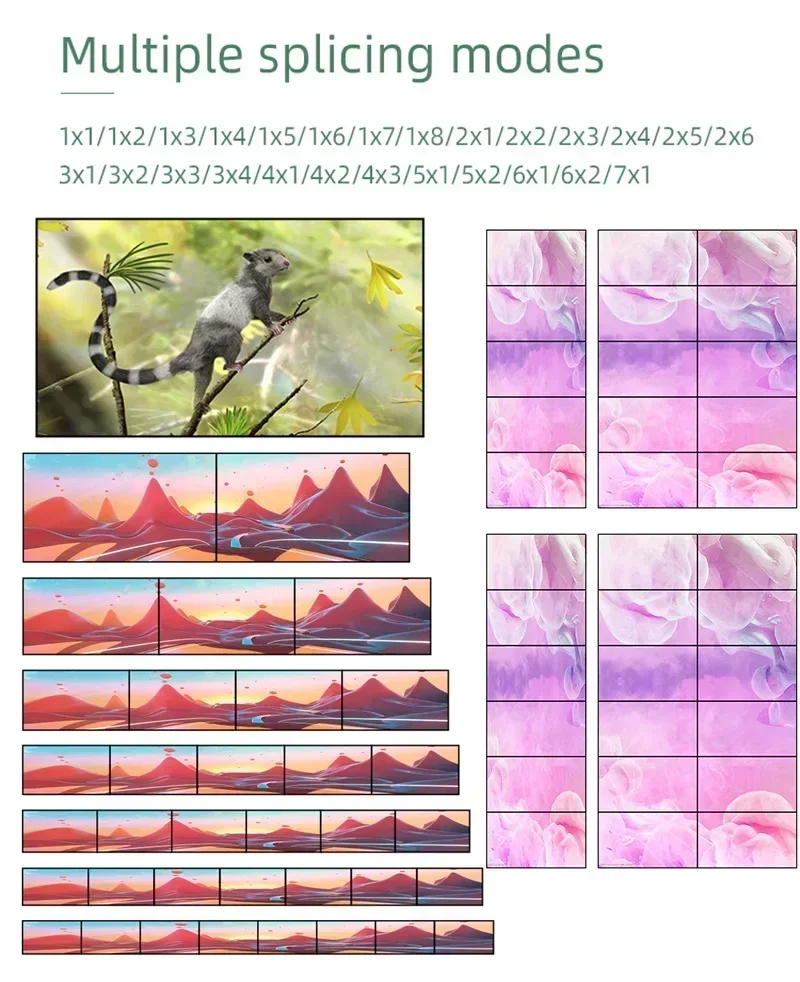 Nota por favor: Este producto no admite empalme de pantallas verticales.Si tiene alguna demanda de empalmadora de pantalla vertical, por favor contáctenos para recomendarle el modelo correcto.