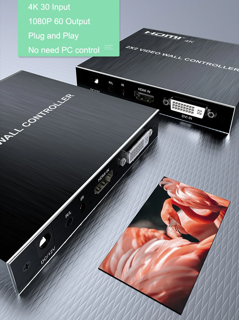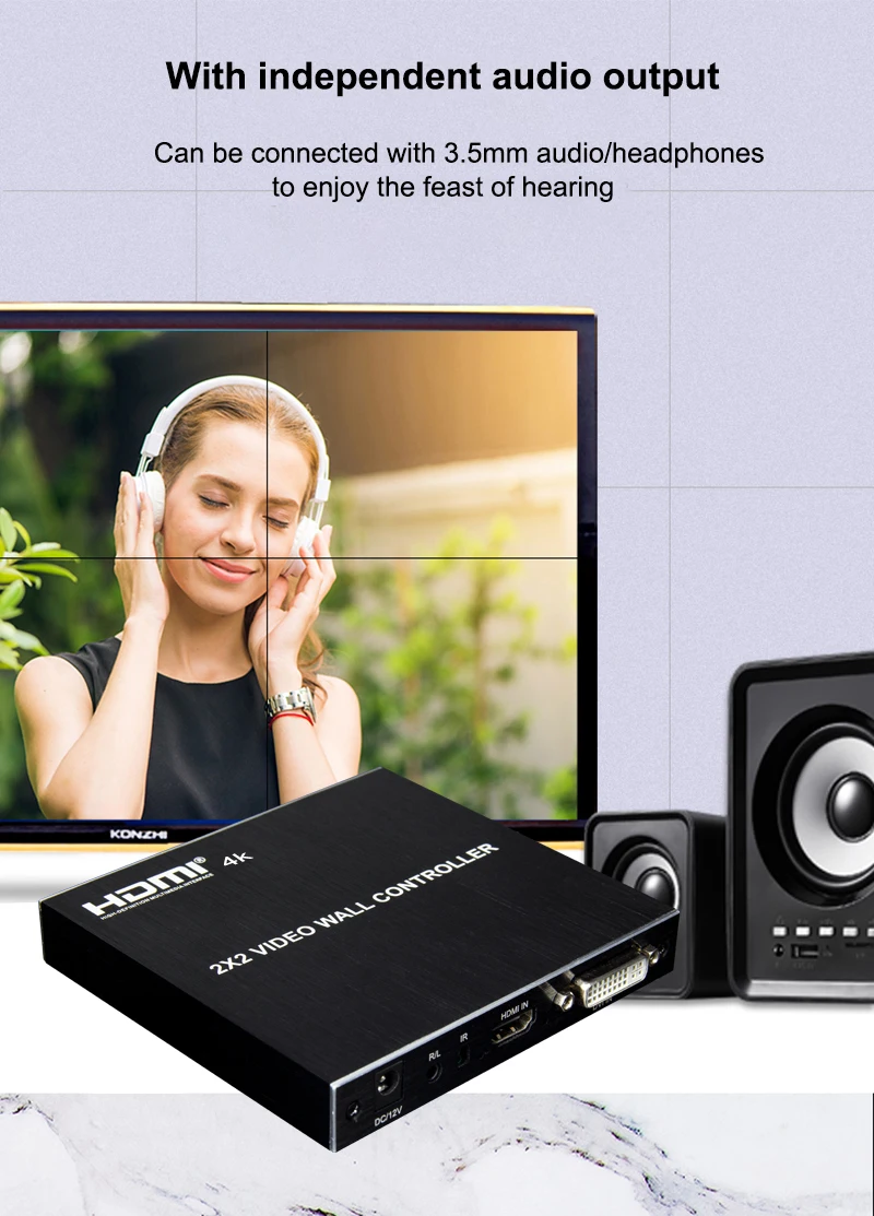 unidad, TV LCD, etc.).Completo con 4 unidades de visualización de vídeo HDMI HD para formar una gran pared de imágenes dinámica.