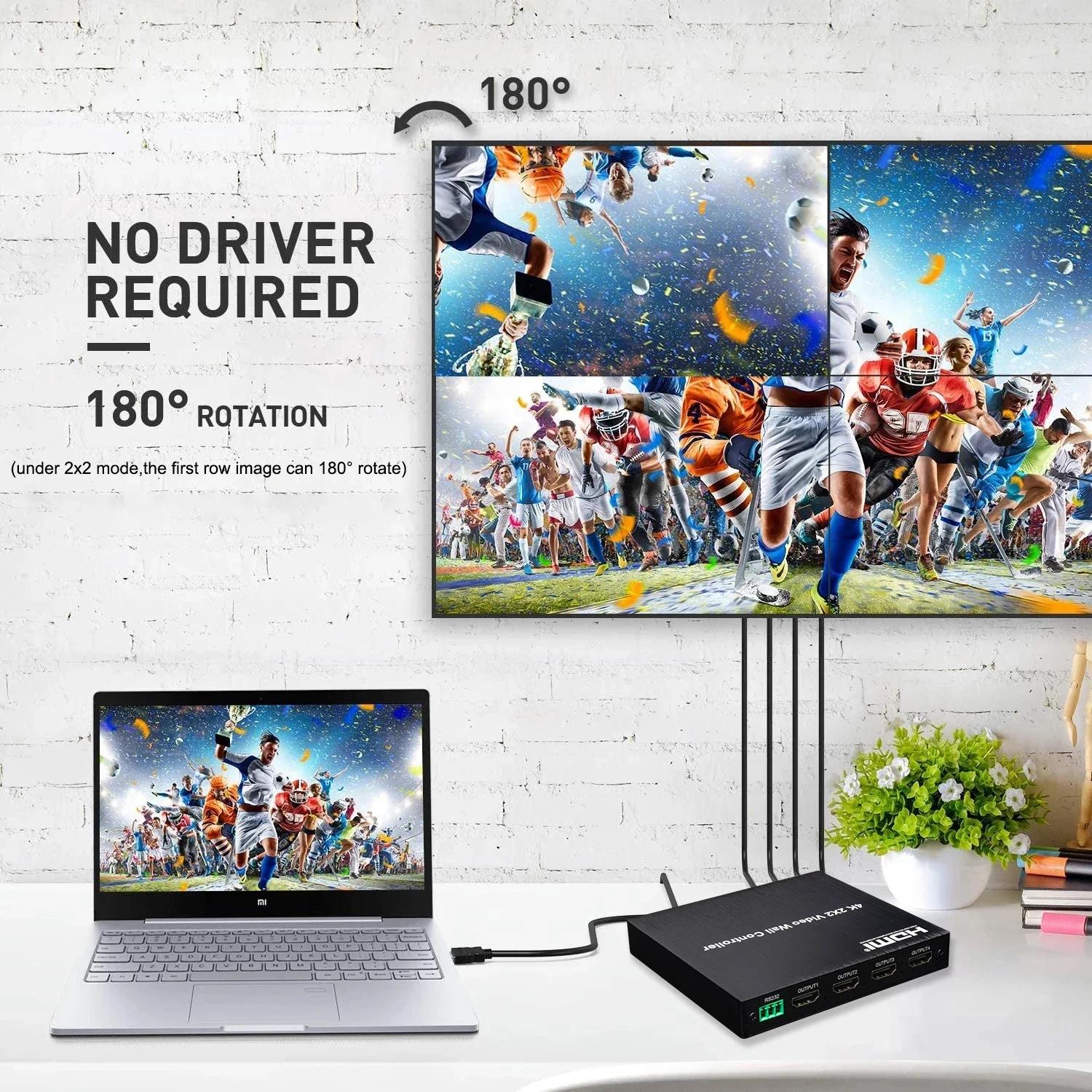 Unidad, TV LCD, etc.). Completo con 4 unidades de visualización de vídeo HDMI HD para formar una gran pared de imagen dinámica.