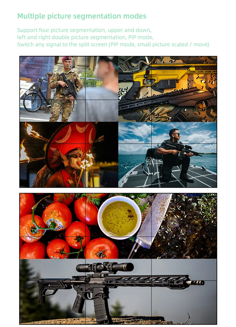 * Dispositivo único, 5 entradas y 9 salidas (compatible con 1x1 ~ 4x4), varios modos de empalme: horizontal/