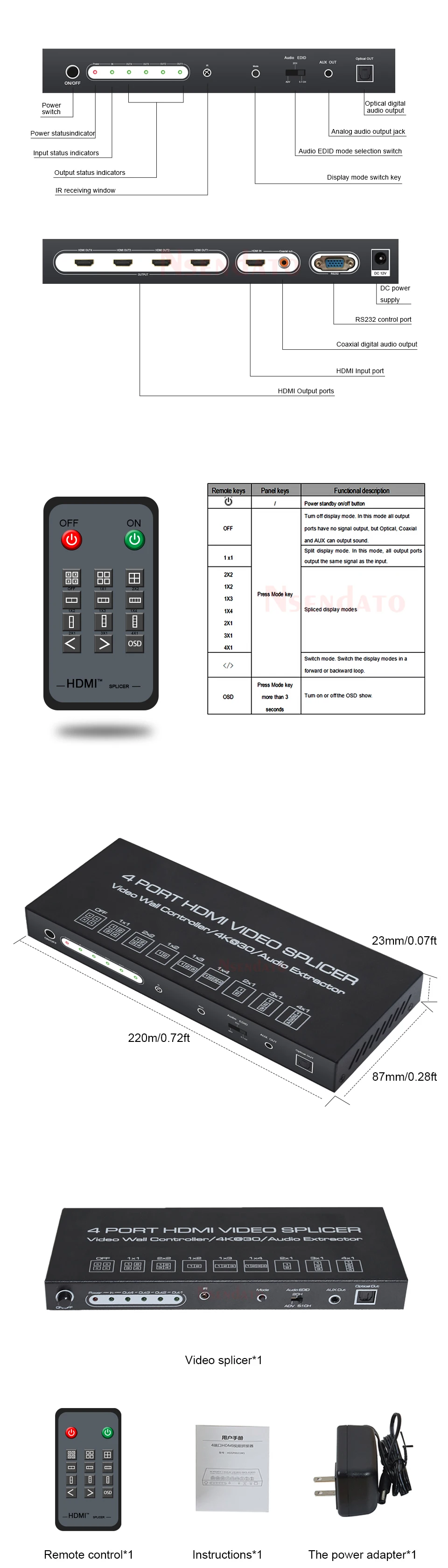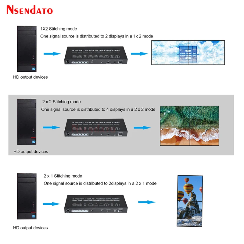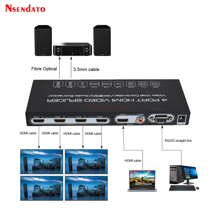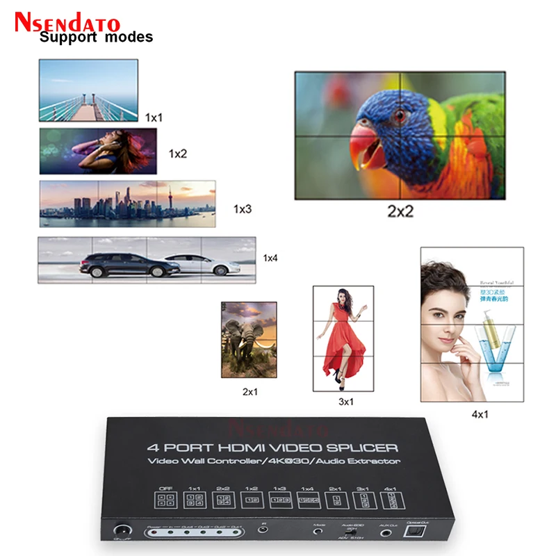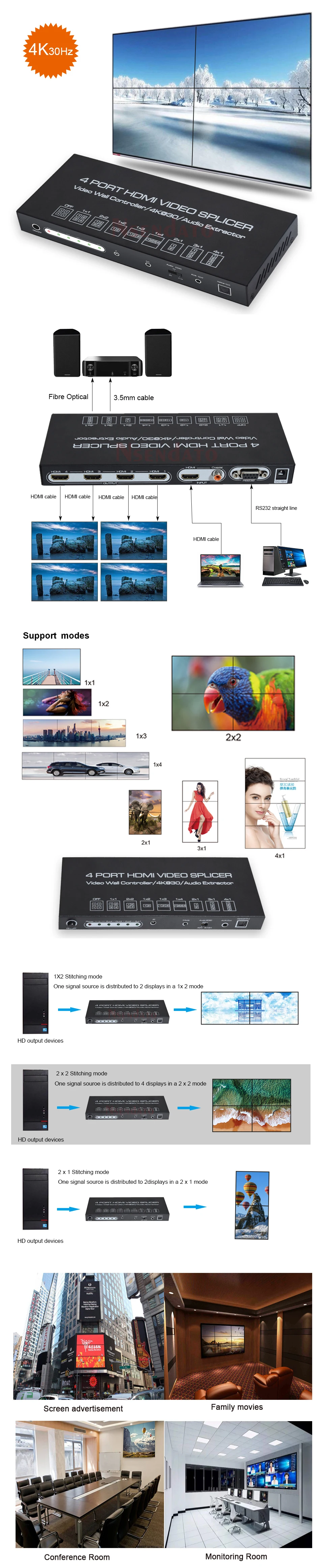 2X2 TV Video Wall Controller Processor Splicer 4K 1x2 1x3 1x4 2x1 3x1 4x1 HDMI Audio Video Splicer splitter Switch with IR RS232