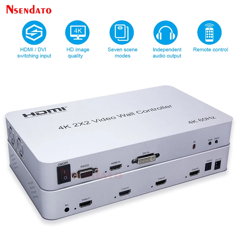 Comprar Controlador de pared de Video para TV Compatible con HDMI, procesador 2x2 4k 60Hz 1x4 3x1 4x1, empalmador de costura de pantalla de Video de pared para PS4 180 "Flip