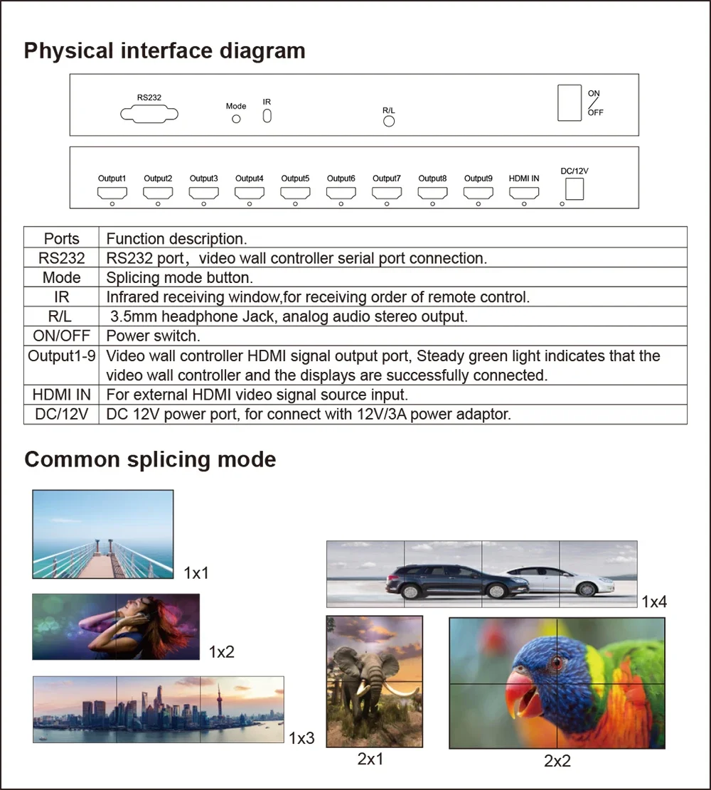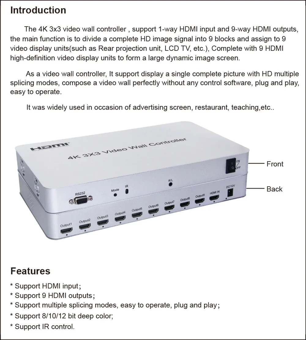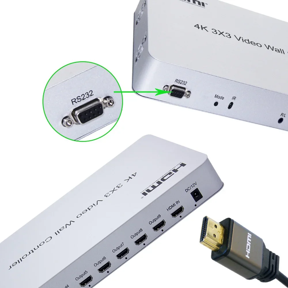 Comprar Controlador de pared de vídeo y voz inteligente 4K 3x3 con Audio AI 2x2 1x3 1x4 2x3 2x4 5x1 4x1 procesador de pared de TV de empalme multipantalla