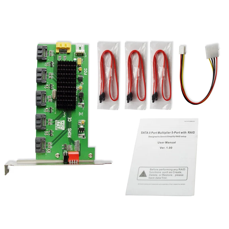 Comprar Controlador Raid de 1 a 5 puertos SATA 2,0, tarjeta RAID compatible con SATA HDD RAID 0/1/5/10, Multiplicador de puertos SATA, soporte de montaje, interruptor de inmersión fácil