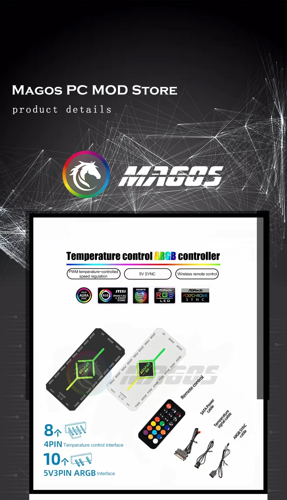Controlador RGB de ordenador 8X 4 pines PWM + 10X 3 pines 5V conector ARGB ventilador de gabinete remoto inalámbrico/Hub ARGB