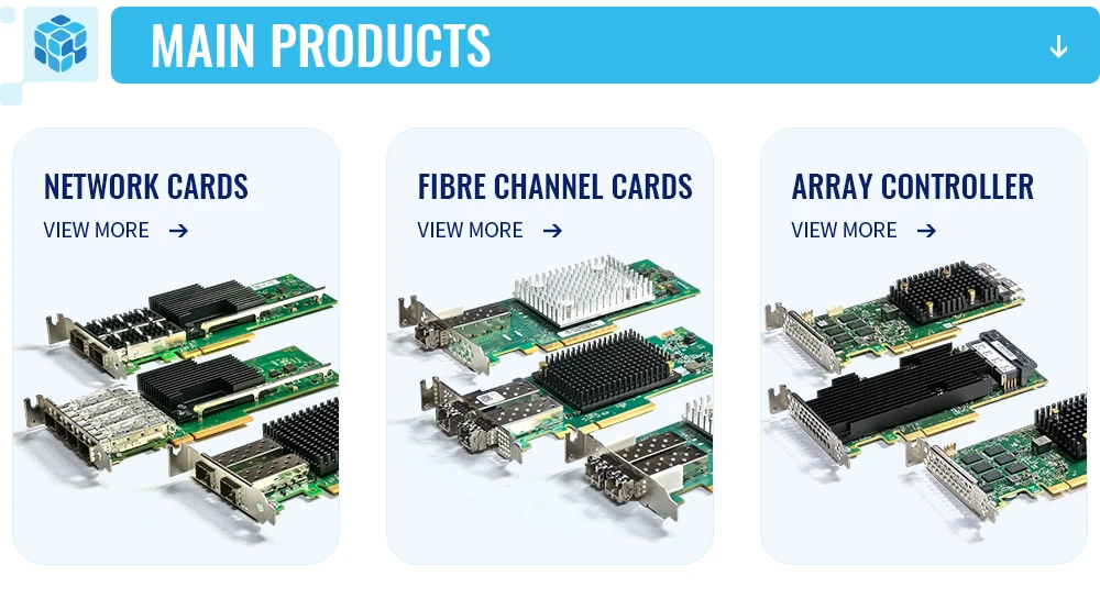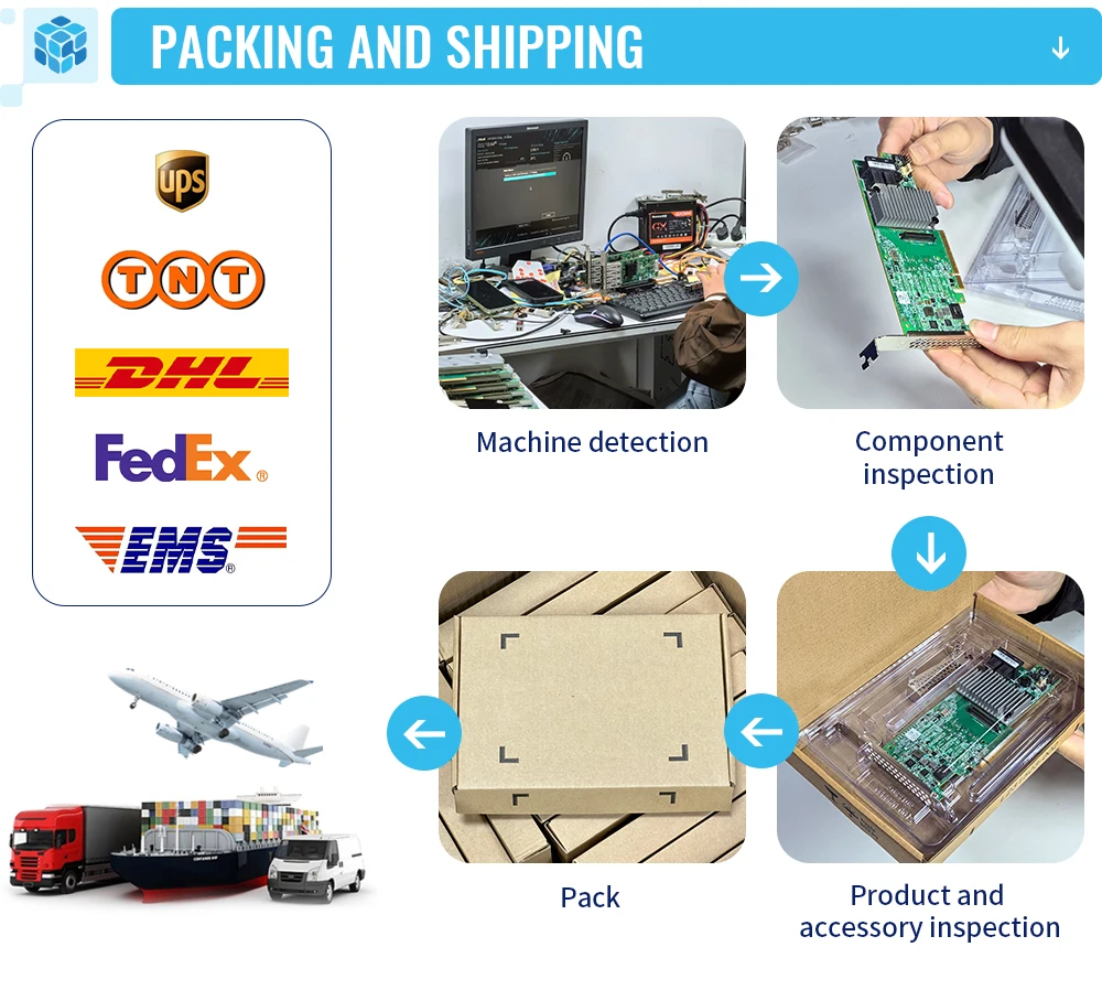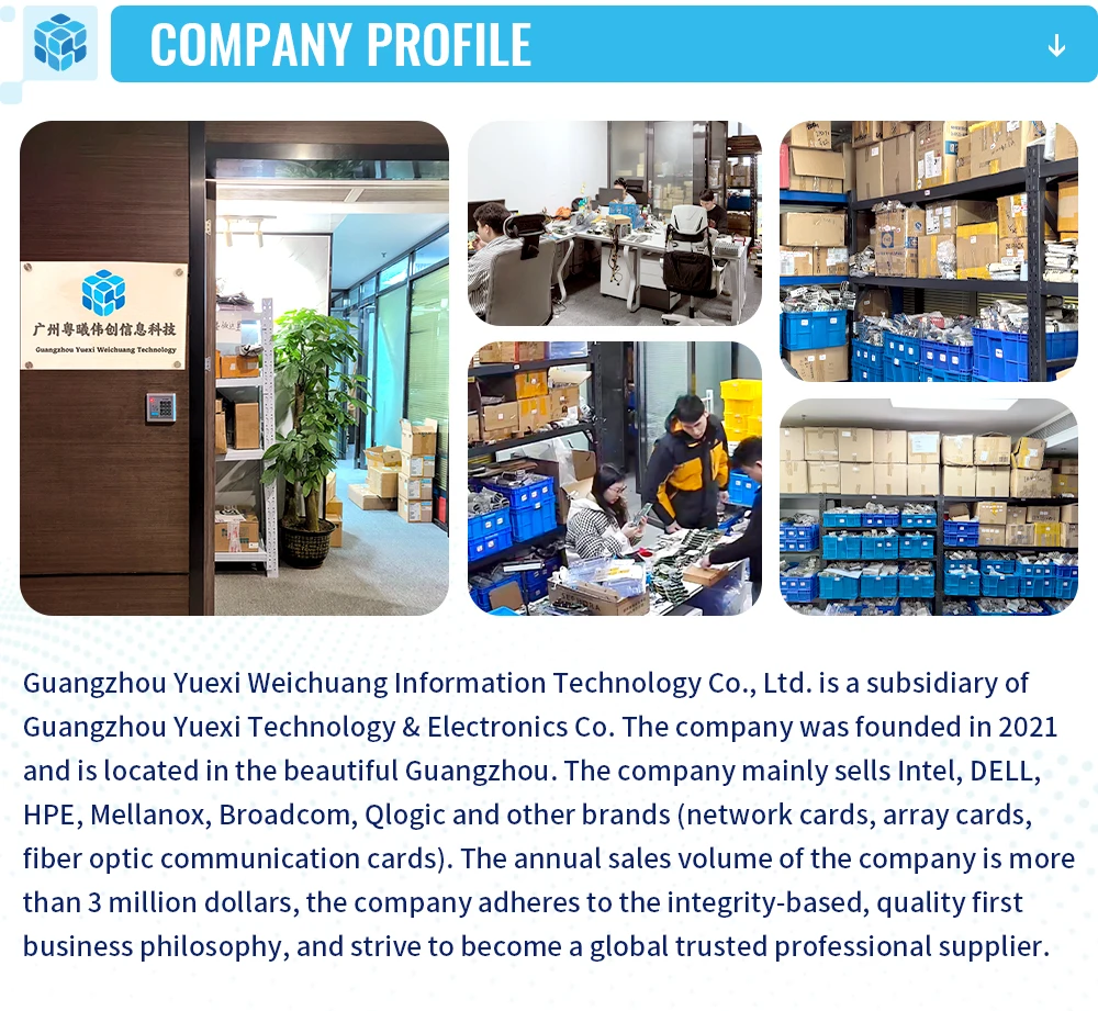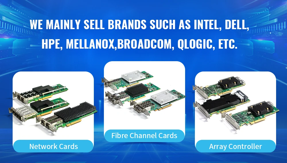 1. ¿Quiénes somos? Tenemos su sede en Guangdong, China y hemos vendido en el mercado interno (60.00%), Europa Occidental (10.00%), América del Norte (10.00%), América del Sur (10.00%), África (200%), Asia Oriental (3%), Medio Oriente (2%), Asia del Sur (1.50%) y el sudeste asiático (1.50%) desde 2016.Tenemos un total de entre 10 y 20 personas en nuestra oficina. 2.¿Cómo garantizamos la calidad? Hacemos muestras de preproducción antes de la producción en masa; La inspección final debe realizarse antes del envío; 3.¿Qué puedes comprarnos? NIC de fibra óptica, NIC de servidor, NIC óptico RJ45, NIC óptico OCP, tarjetas Ethernet, tarjetas HBA, tarjetas controladoras Raid. 4.¿Por qué comprarnos a nosotros en lugar de a otros proveedores? Disponemos de 3 almacenes en China: Shenzhen, Guangzhou y Beijing.Con más de 8 años de experiencia, estamos comprometidos a brindar el más alto nivel de servicio al cliente y envío más rápido. 5.¿Qué servicios ofrecemos? Condiciones de entrega aceptadas: FOB, CIF, precio de exportación; Devías de pago aceptadas: USD, CNY USD, CNY; Métodos de pago aceptados: T/T, tarjeta de crédito, PayPal, Western Union, efectivo, depósito de garantía; Idiomas Inglés, Chino