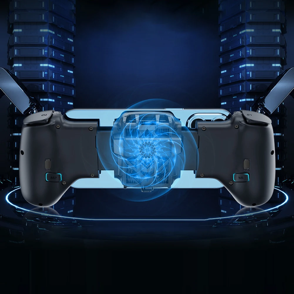 5. Excelente disipación de calor:Equipado con un ventilador de 7 aspas en la parte posterior, este joystick de GamePad para teléfono móvil proporciona una disipación de calor efectiva para su teléfono inteligente, manteniéndolo fresco durante sesiones de juego intensas. La vibrante iluminación LED mejora aún más el ambiente de juego.