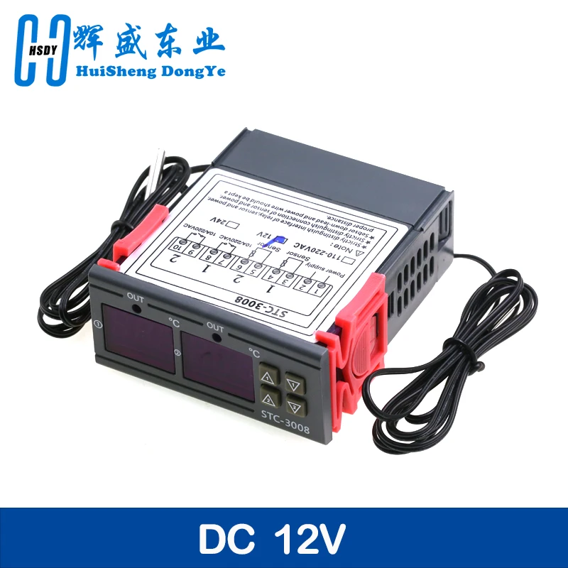 Controlador de temperatura Digital Dual termostato termorregulador incubadora relé LED 12V24V 220V calentador enfriador doble sonda STC-3008