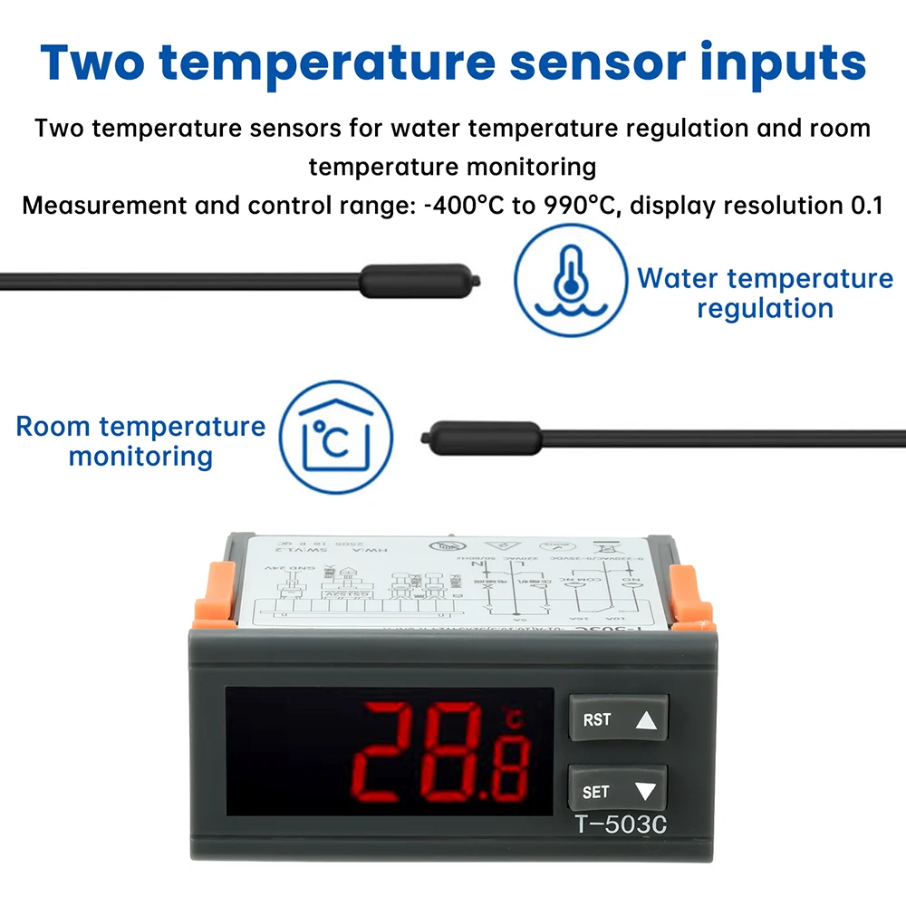 1 x T-503C DC 24V Laser Chiller Temperature Controller Dual Temperature Sensor Multi-Channel Control Output Intelligent Thermostat