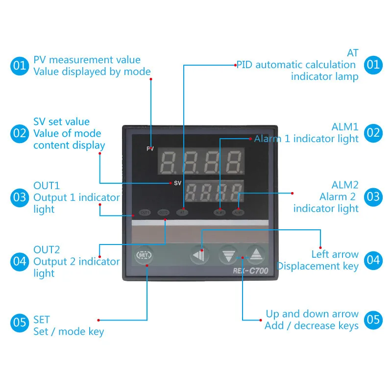 Con control PID convencional rápido y suave, programa de configuración de última generación. Salida opcional: contacto de relé, nivel lógico, SCR monofásico, trifásico sobre cero o pulso de disparo de cambio de fase, analógico, conexión de salida de contacto de alarma definible en carretera.