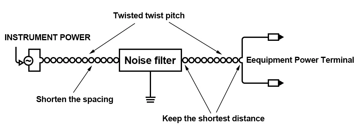 (4) El cable de alimentación del instrumento generalmente no es la interferencia de la línea de alimentación, como interferencias, se debe usar un filtro de ruido y el uso de un filtro de ruido debe tener en cuenta lo siguiente;