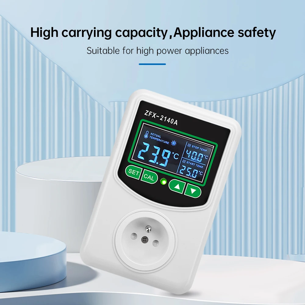 1 enchufe de controlador de temperatura de pantalla Digital LCD de alta potencia de 1x300, enchufe de la UE, termostato, SONDA DE Sensor NTC-45 ~ ℃
